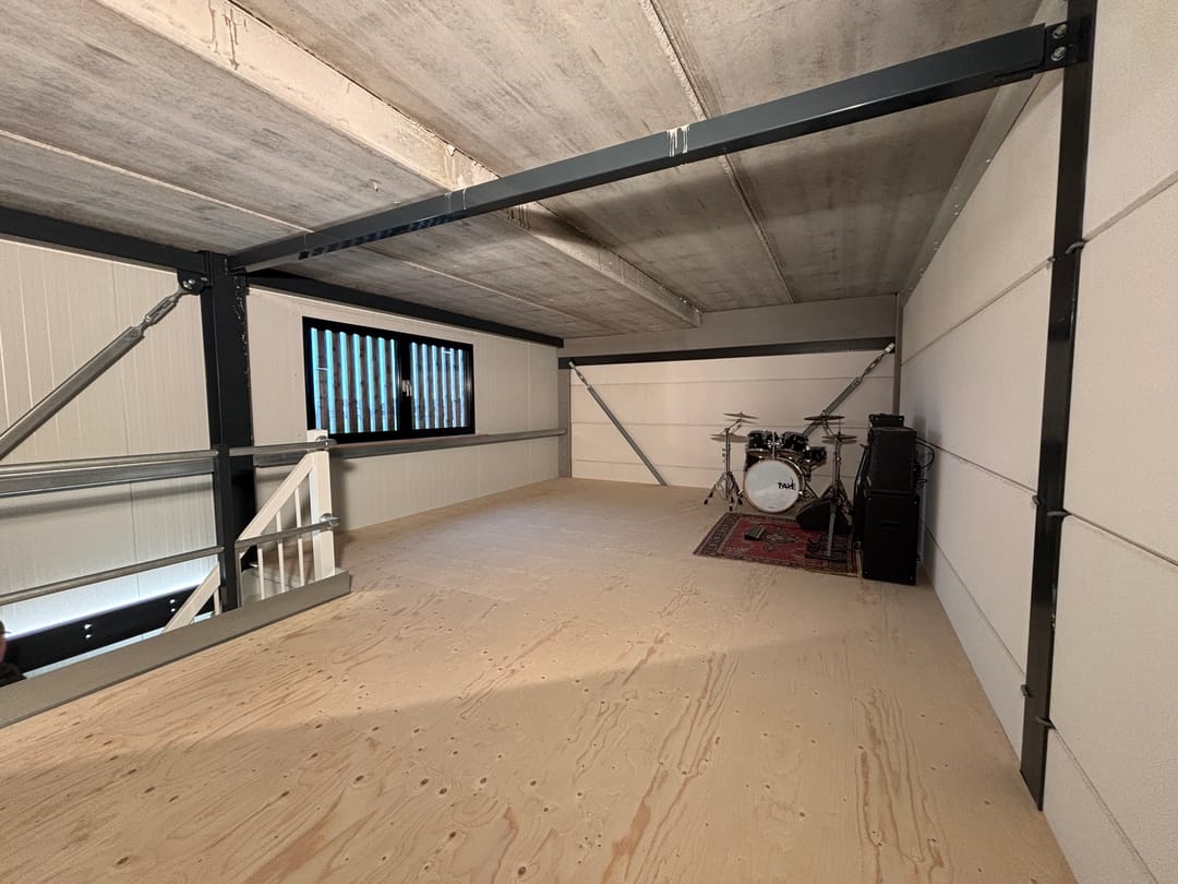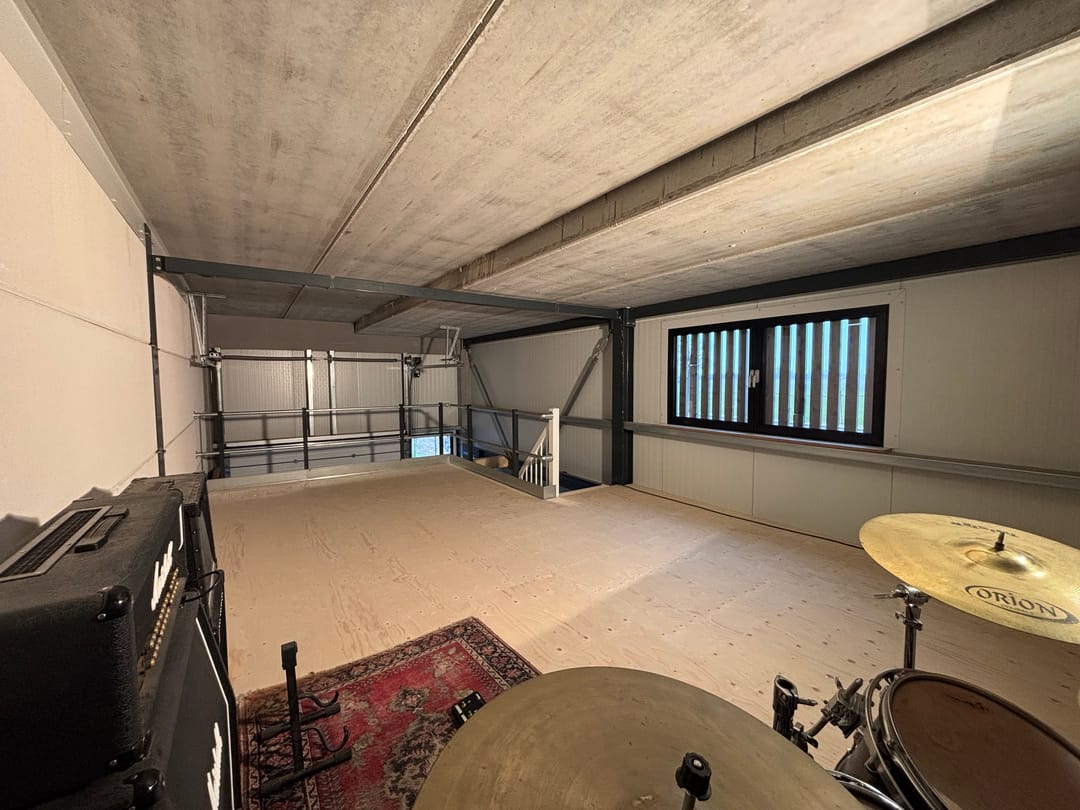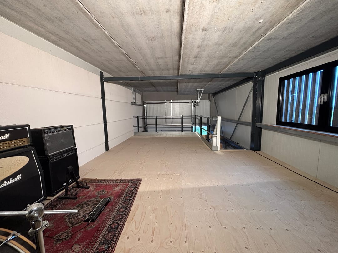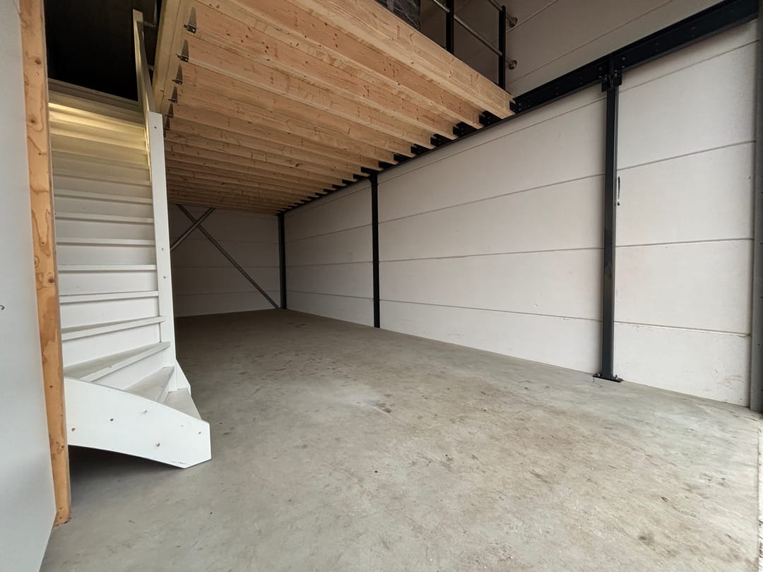 Entree middels een loopdeur of de elektrisch bedienbare overheaddeur. Bij binnenkomst treft u de meterkast en voorbereiding t.b.v. het toilet. Middels de houten trap wordt de verdiepingsvloer bereikt.