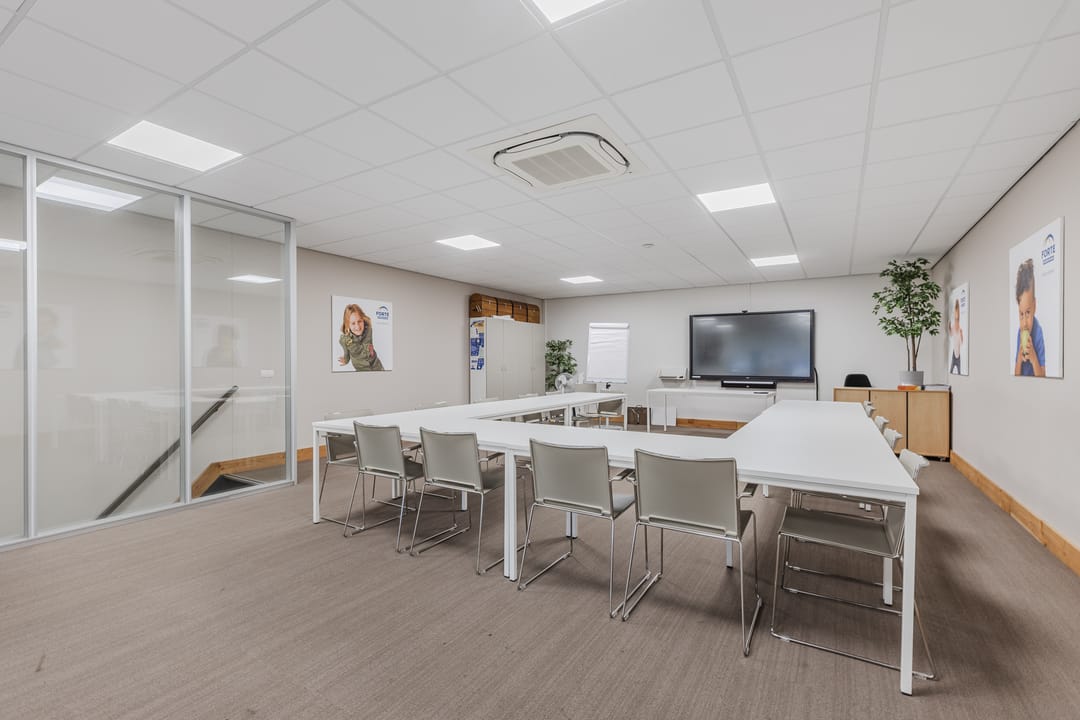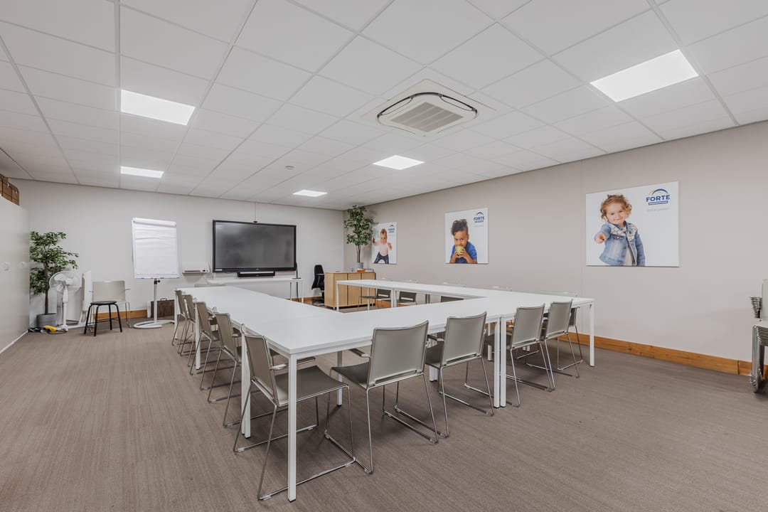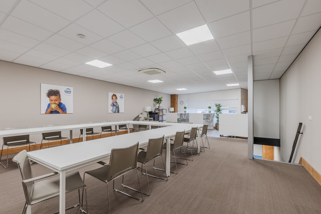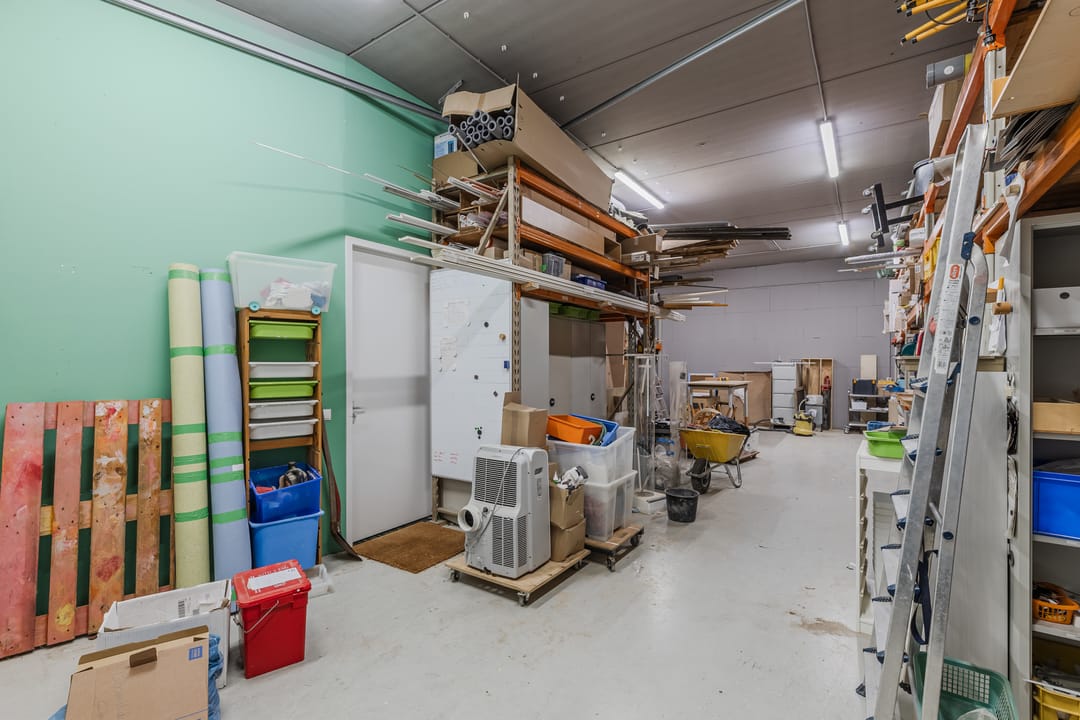 - Overheaddeuren, krachtstroom, betonvloer, toilet, pantry, airconditioning, inbouwarmaturen en te openen ramen