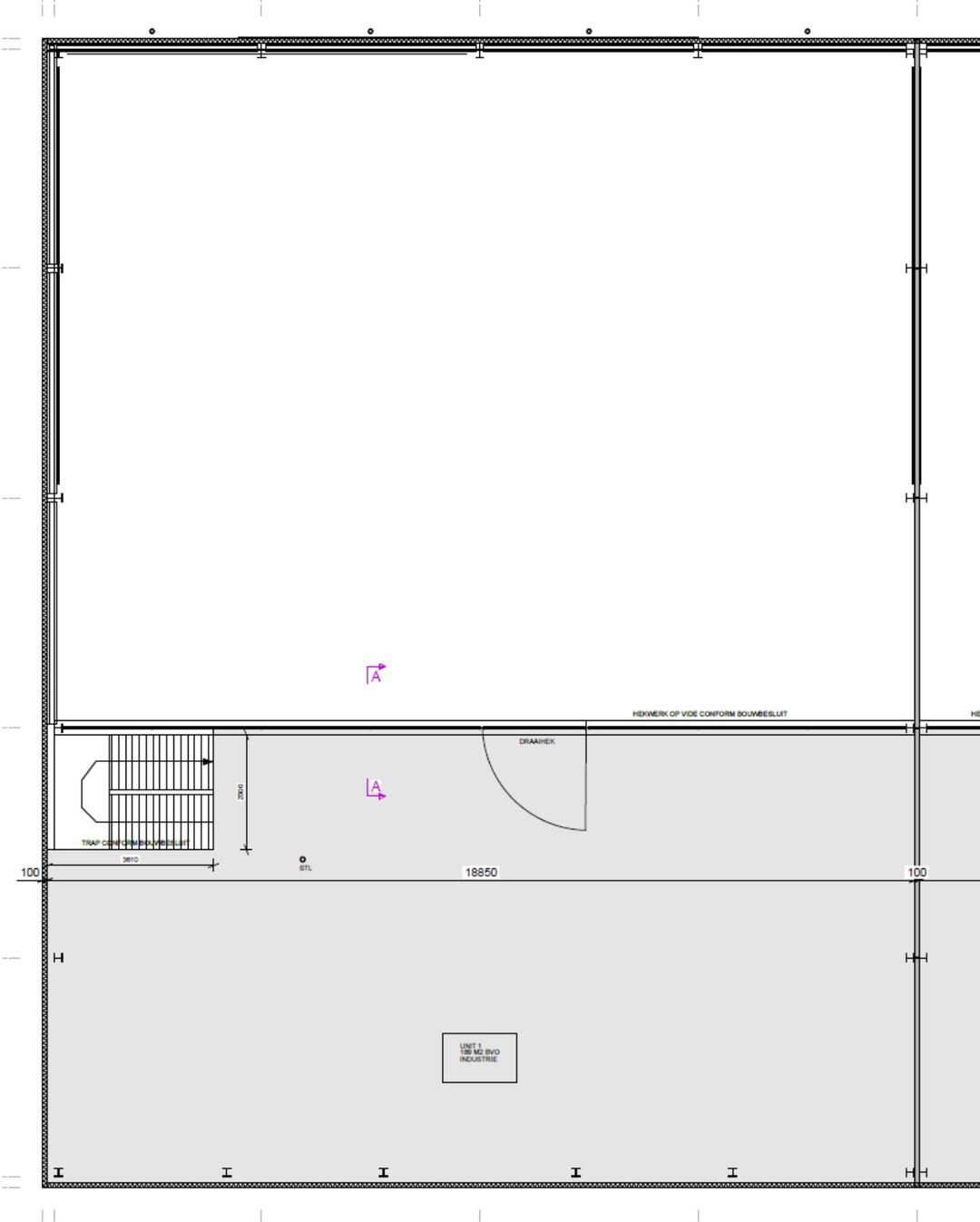 - Vrije hoogte bedrijfsruimte ca. 7,5 mtr
