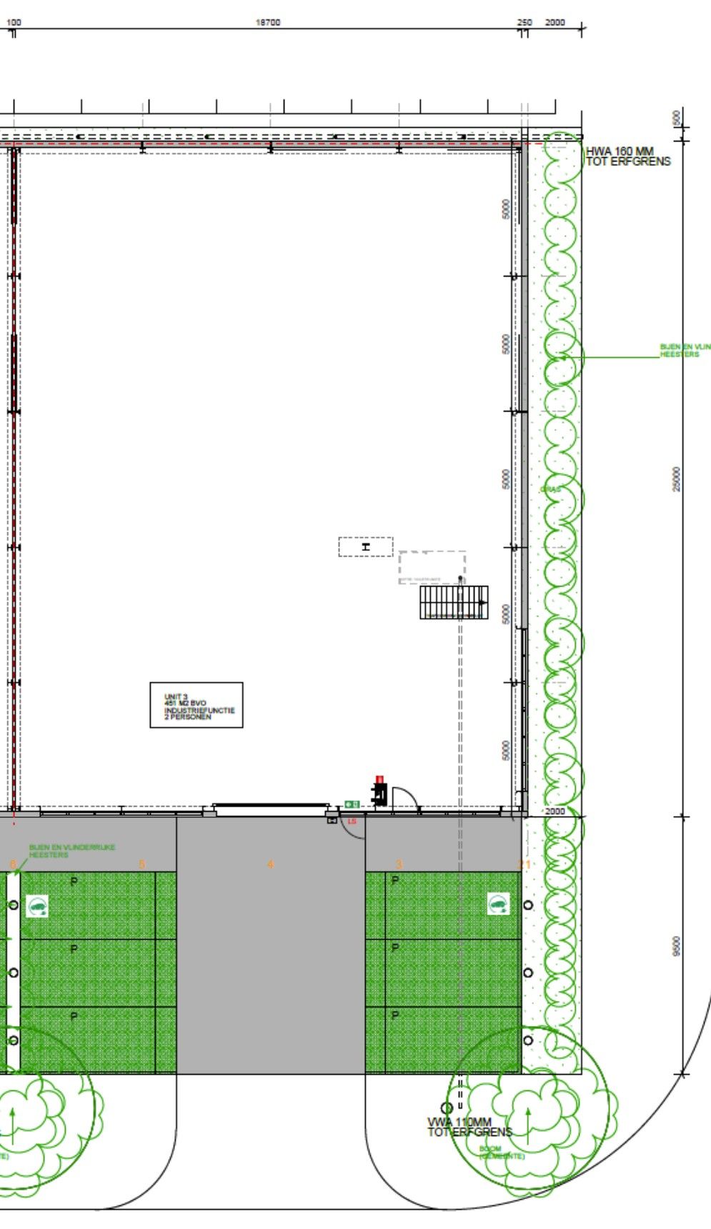 - Vrije hoogte bedrijfsruimte ca. 7,5 mtr