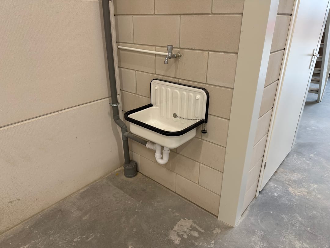 - plaatstalen uitstortgootsteen met koudwatervoorziening en waterafvoer;