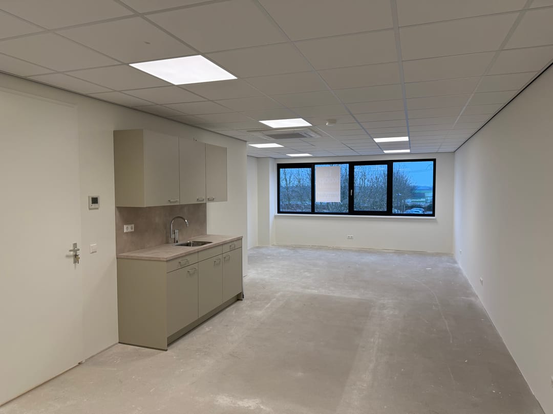 Unit 26 wordt ‘vrij op naam’ te koop aangeboden en de bedrijfsruimte wordt opgeleverd inclusief luxe toiletruimte, elektrisch bedienbare overheaddeur, uitstortgootsteen en elektra. De volledig afgebouwde kantoorverdieping is voorzien van afgewerkte voorzetwanden, een systeemplafond met led-verlichting, een airco plafondunit ten behoeve van verwarmen en koelen en een luxe pantry. Twee eigen parkeerplaatsen, voorzien van mantelbuis ten behoeve van een eventuele toekomstige laadpaal.