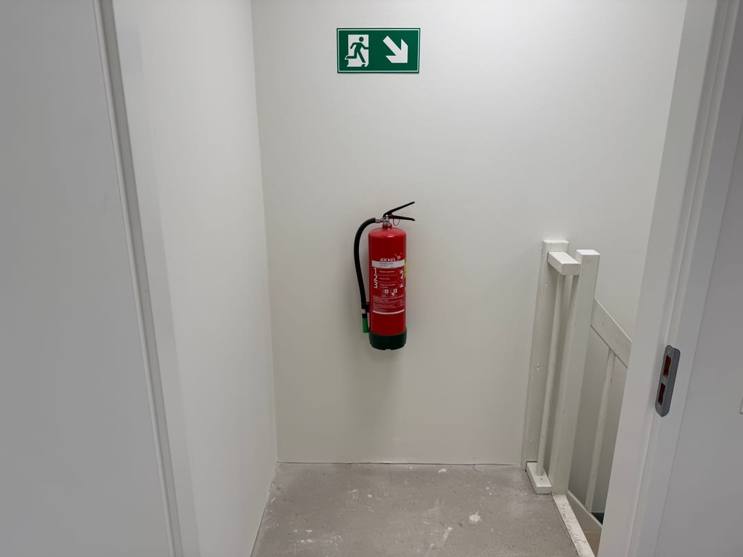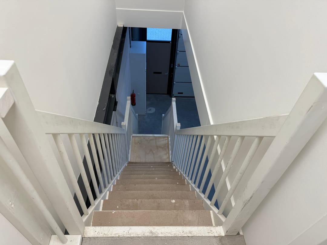 - bovenaan de trap een wand rondom het tapgat met kozijn en deur;