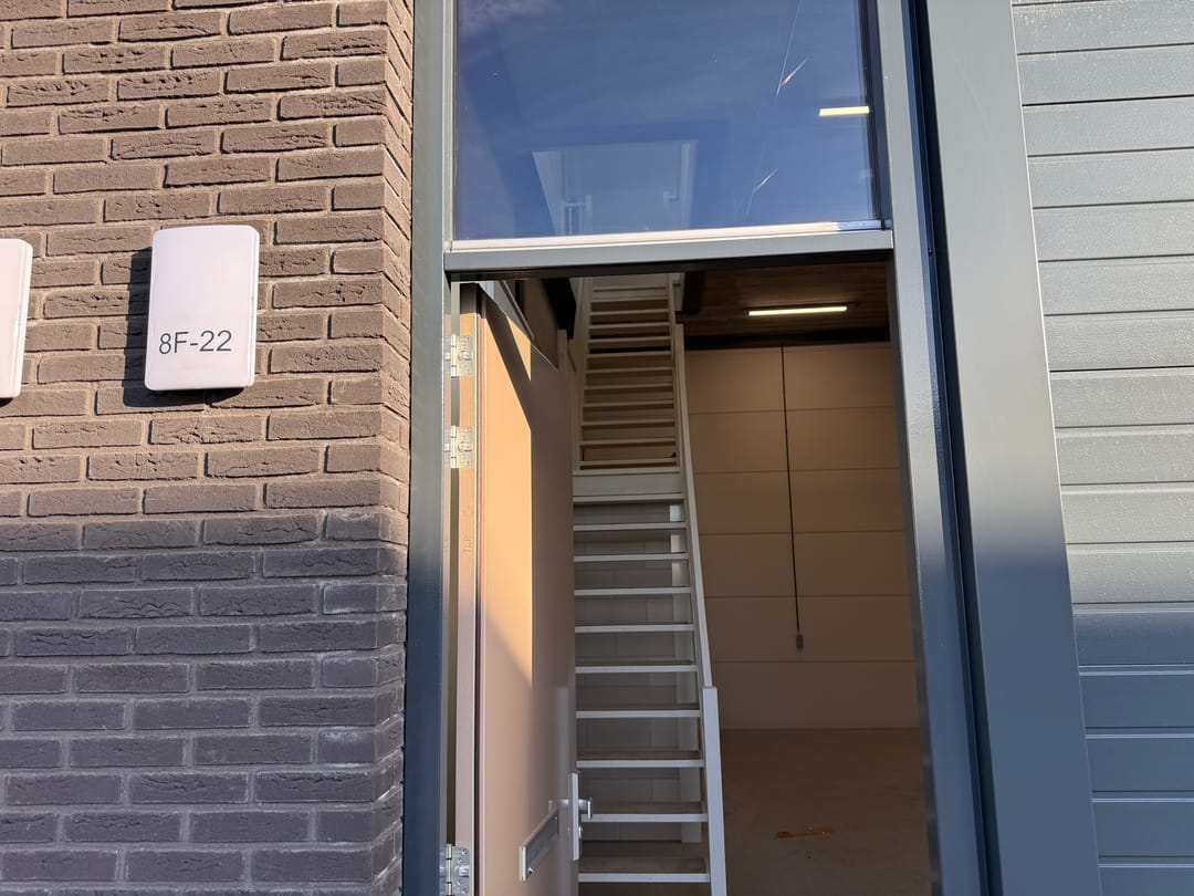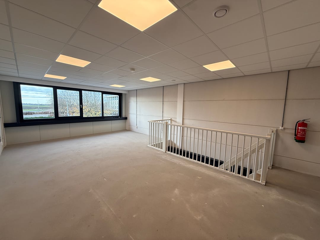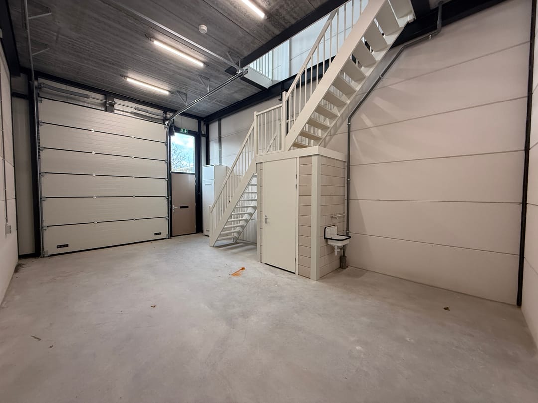 De unit wordt ‘vrij op naam’ te koop aangeboden en de bedrijfsruimte wordt opgeleverd inclusief luxe toiletruimte, elektrisch bedienbare overheaddeur, uitstortgootsteen en elektra. De afgebouwde kantoorverdieping is voorzien van een systeemplafond met led-verlichting en een luxe pantry.