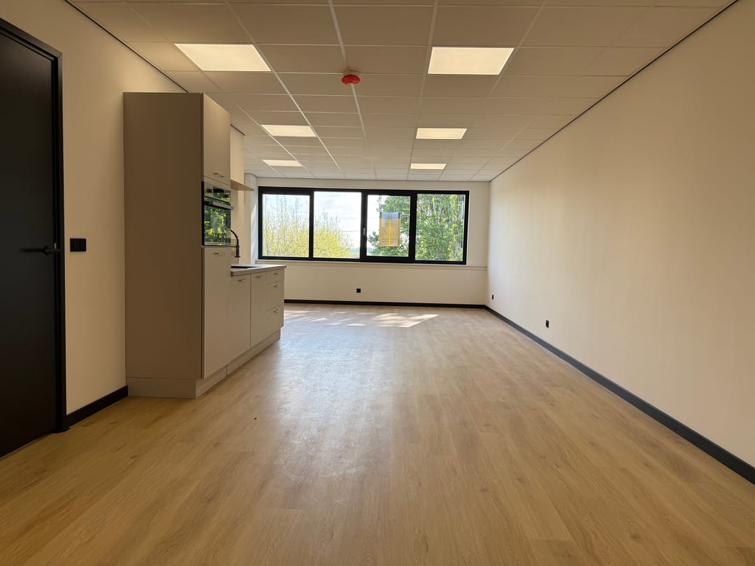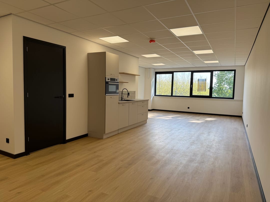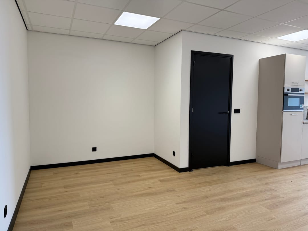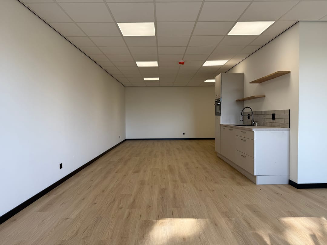 Van casco naar turn-key, wat houdt dat in? Dat houdt in dat álles voor je is afgewerkt en geregeld. Van een dichtgezette/afgesloten trap, tot aan een gelegde vloer, pantry (met combi oven, koelkast, spoelbak en vaatwasser), wandafwerking, gave zwarte plinten, plafondverlichting en een toilet. Je zet je bureau's neer, vult de koelkast en kunt meteen van start!