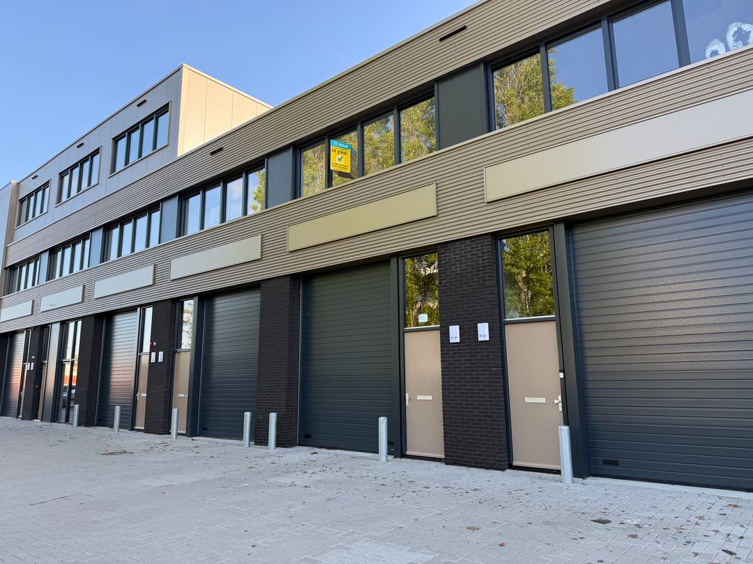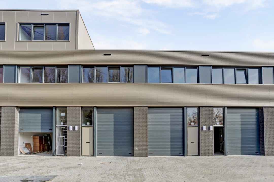 - Overheaddeuren, betonvloer, toilet, pantry, inbouwarmaturen en te openen ramen