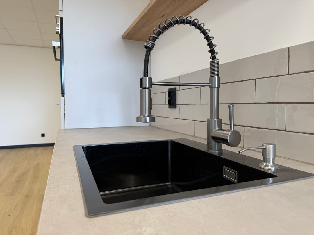 - Pantry met combi oven, spoelbak, vaatwasser en koelkast;