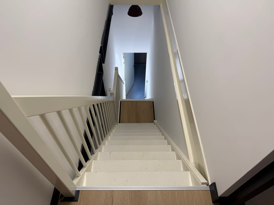 - Houten trap naar verdiepingsvloer;