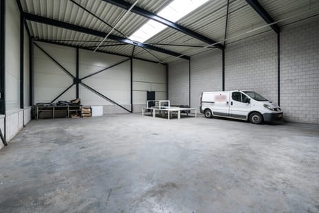 Lichtstraten, overheaddeuren, betonvloer, toilet en pantry