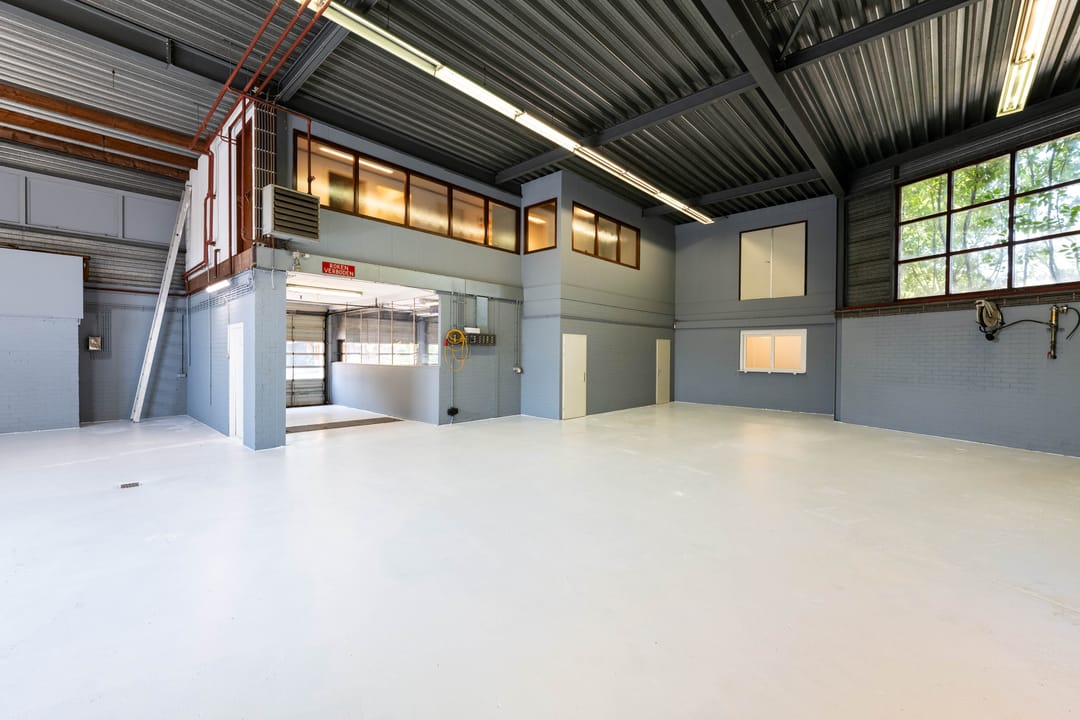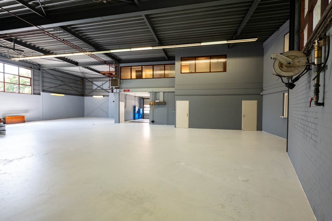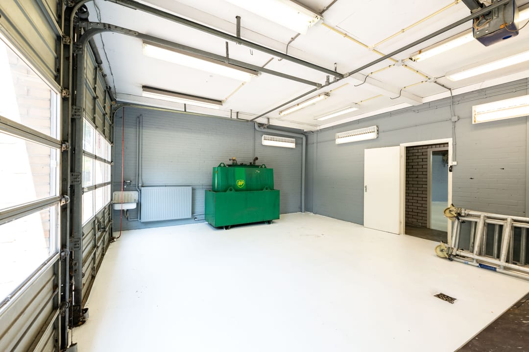 - Overheaddeuren, krachtstroom, betonvloer, toilet, pantry, inbouwarmaturen en te openen ramen