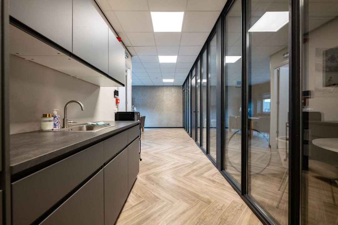 - Systeemplafond met LED verlichting en airconditioning per unit;