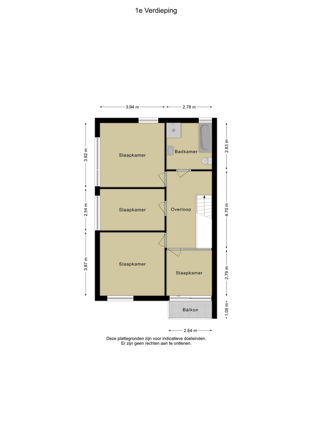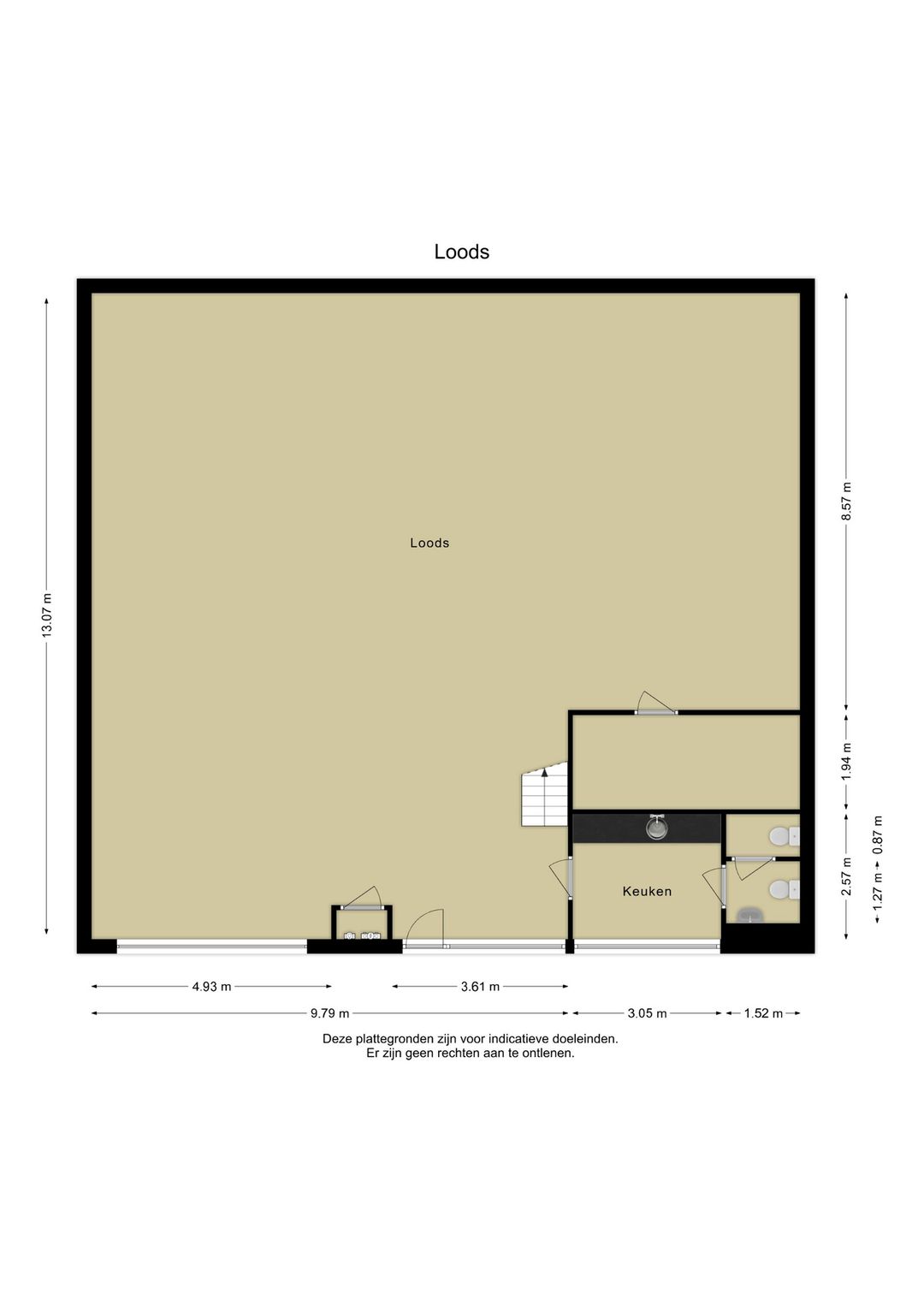 - Vrije hoogte circa 3 meter, verdiepingsvloer circa 2,10 meter;