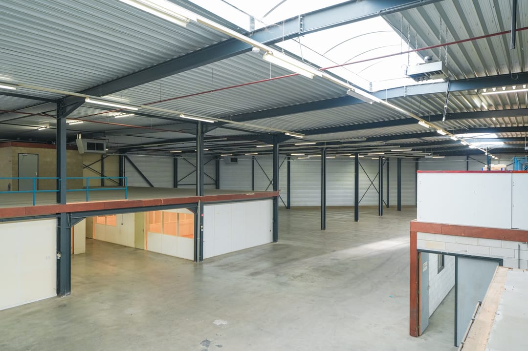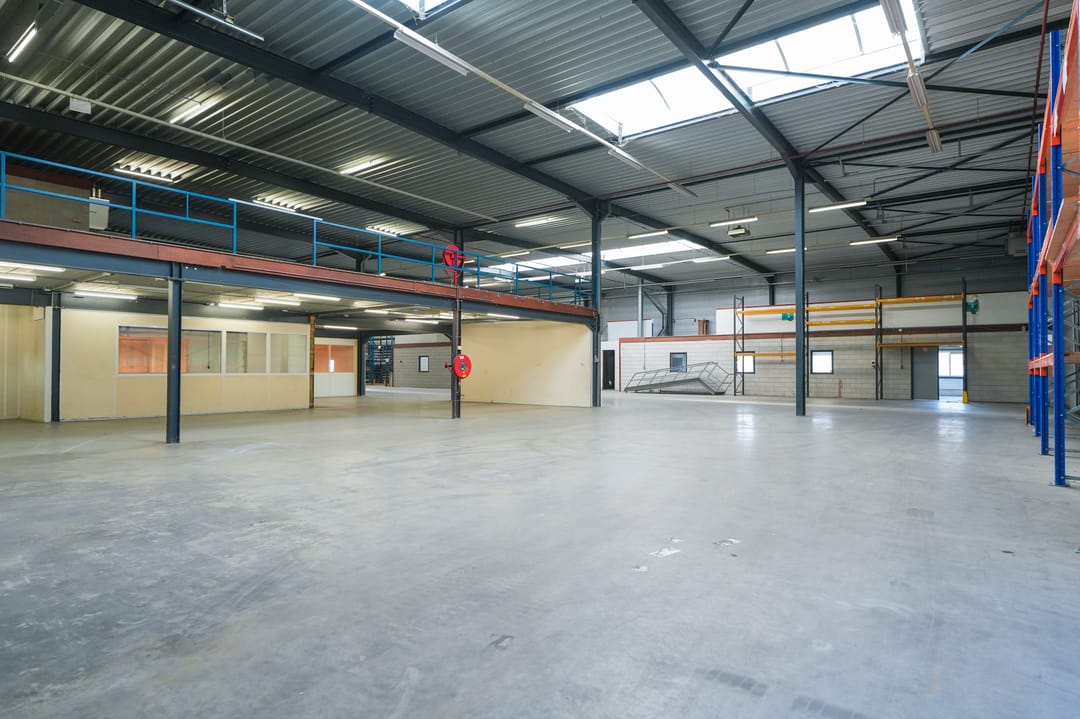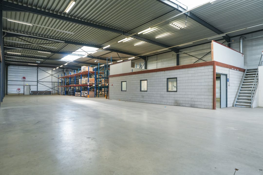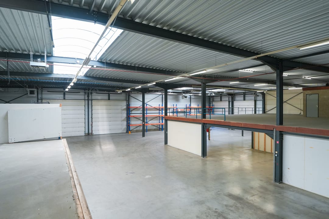 De gedeeltelijk aanwezige entresol met betonnen vloer in de bedrijfshal zorgt voor extra opslagruimte.