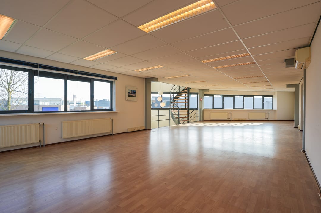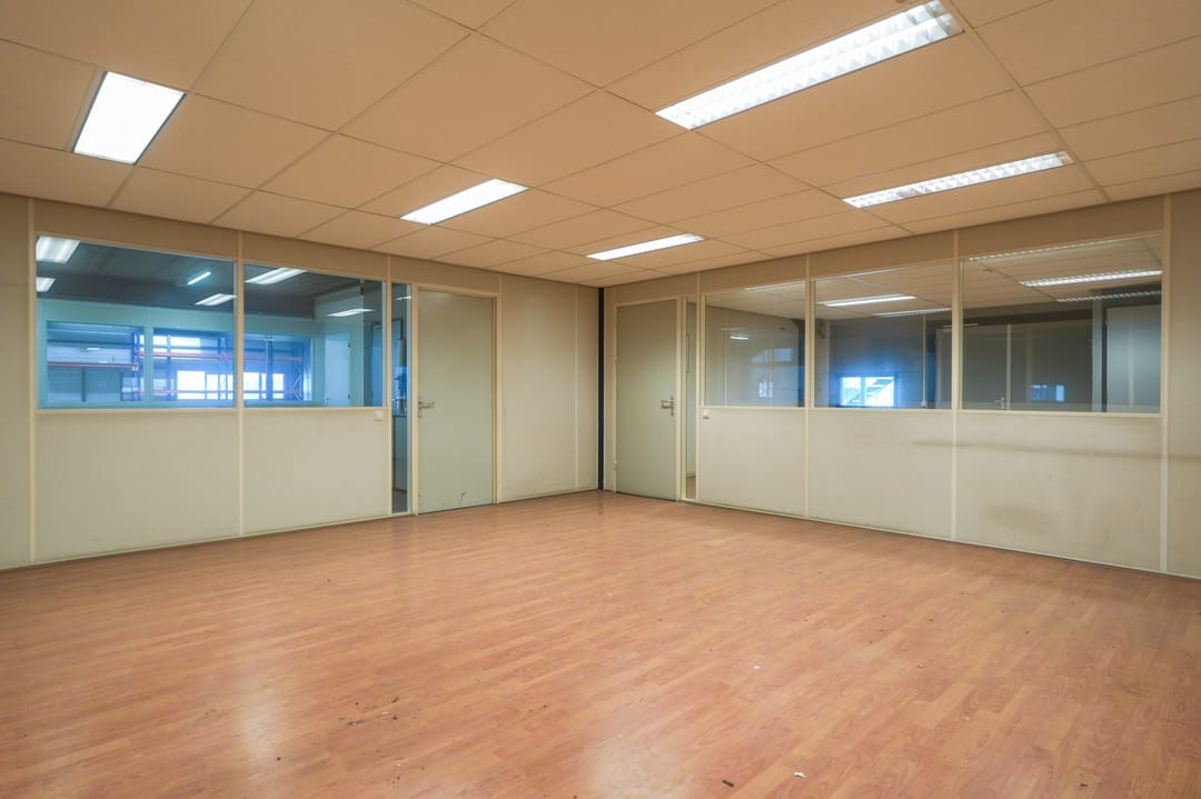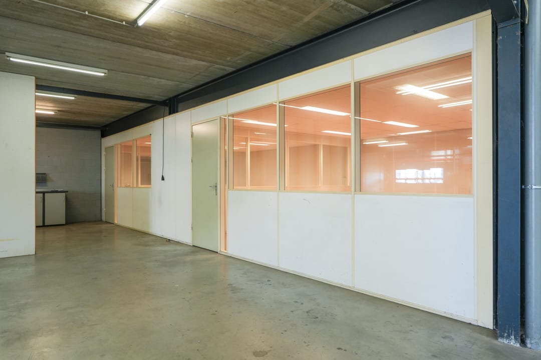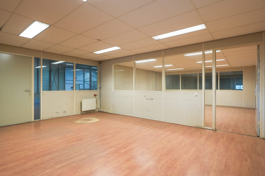 - 3 inpandige bedrijfskantoren deels voorzien van systeemplafond met TL inbouwverlichtingsarmaturen, radiatoren met thermosstaatkraan en kabelgoot;