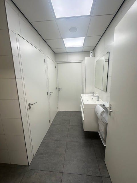 - Lichtstraten, overheaddeuren, krachtstroom, betonvloer, heater, toilet, pantry, airconditioning, inbouwarmaturen en te openen ramen