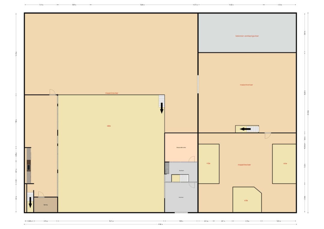 Bedrijfsruimte begane grond: circa 1.265 m2 waarvan