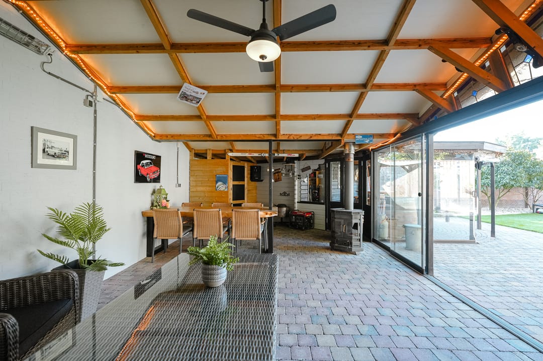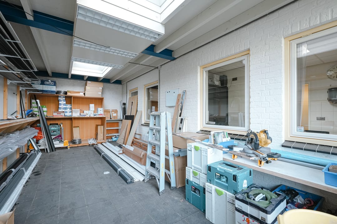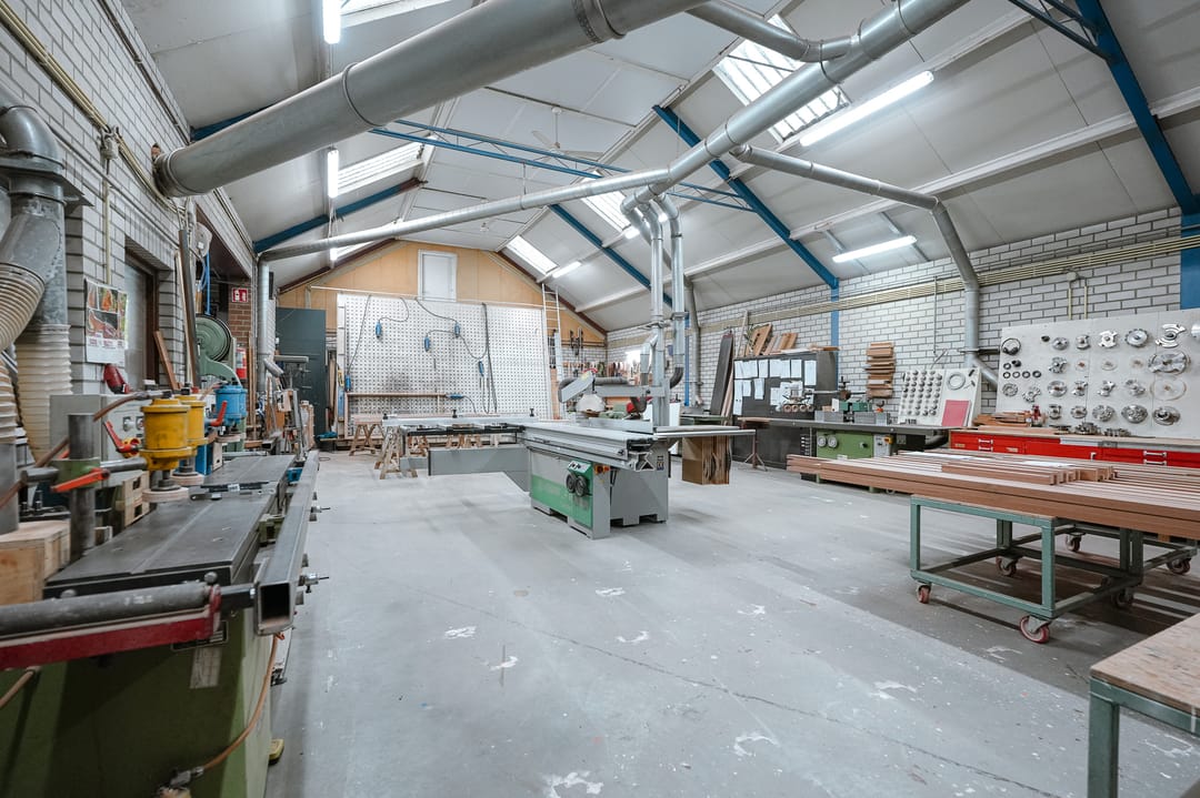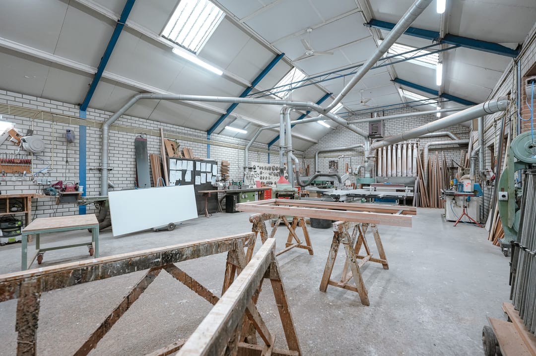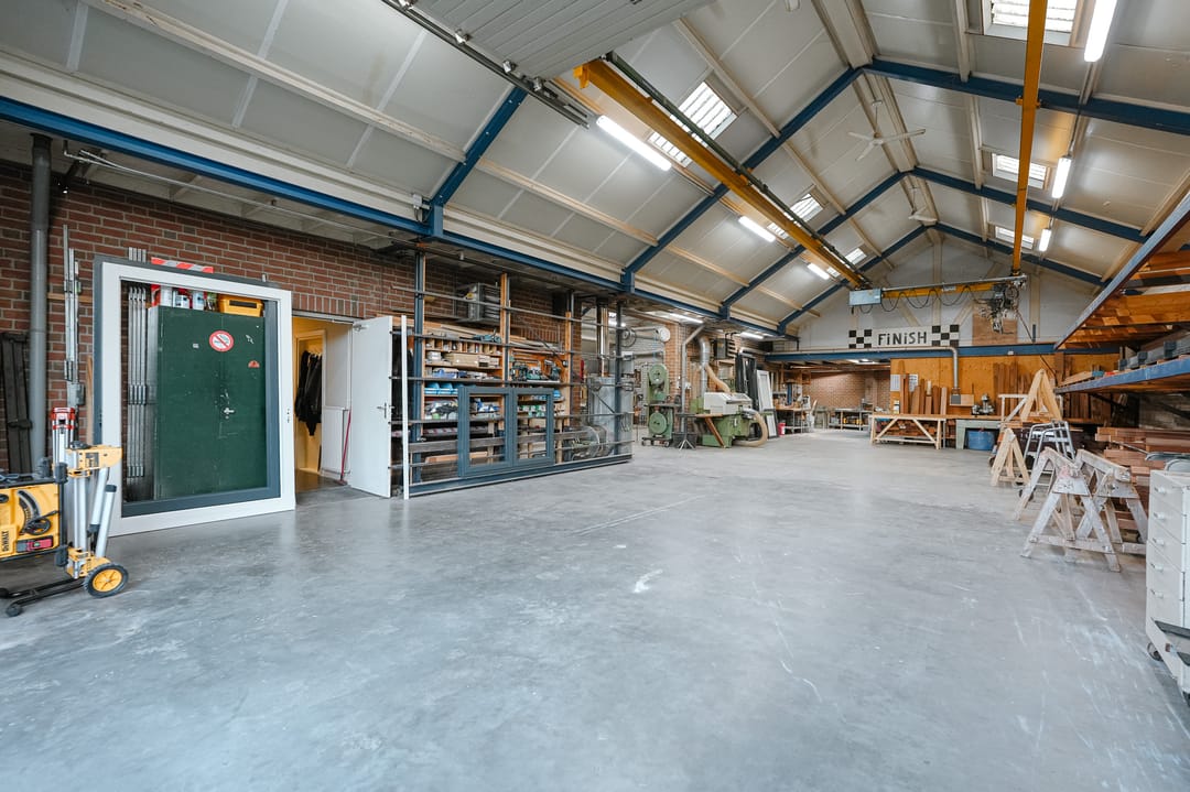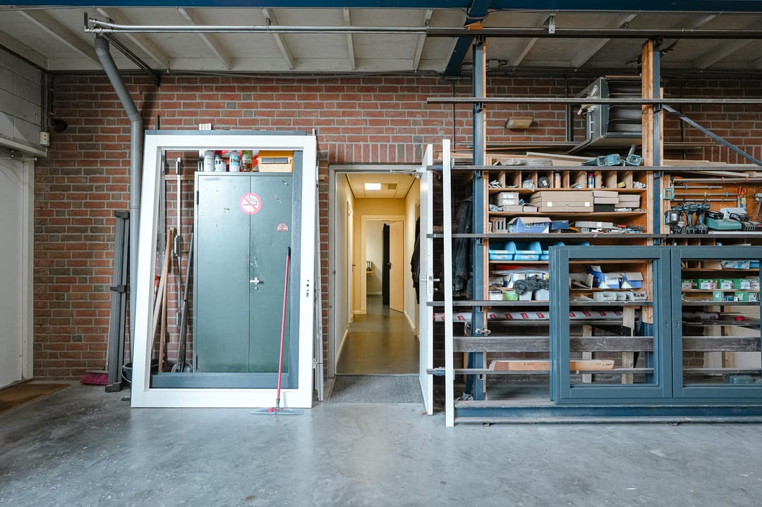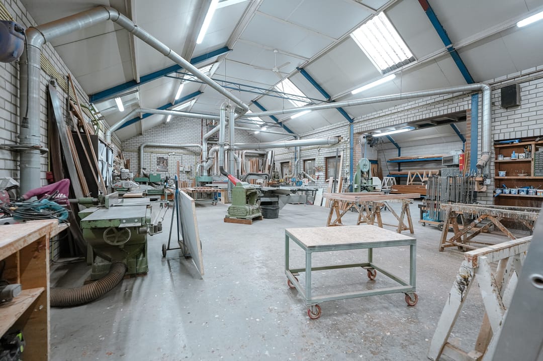 - Overheaddeuren, krachtstroom, betonvloer, heater, toilet, pantry, inbouwarmaturen en te openen ramen