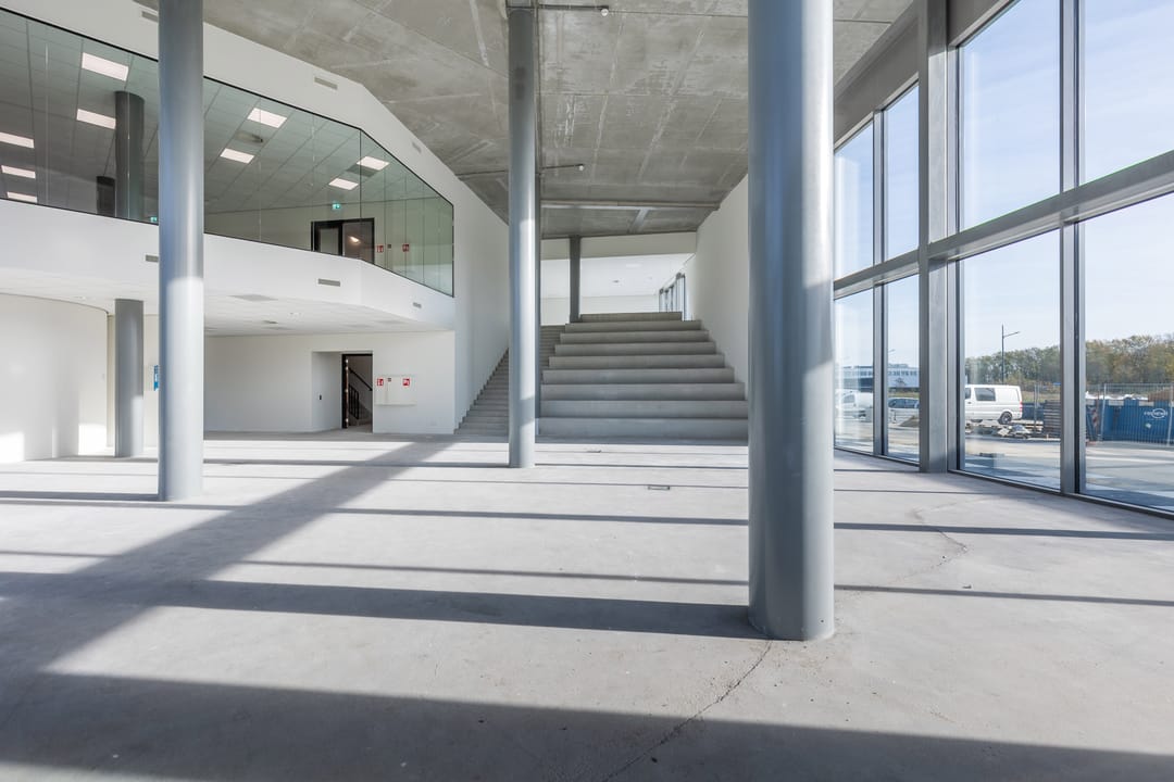 • Royale ontvangsthal met imposante videpartij en betonnen tribune in trapvorm (t.b.v. creëren presentatie-/congresfunctie)
