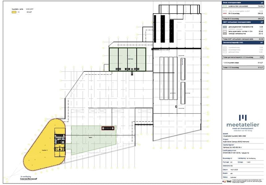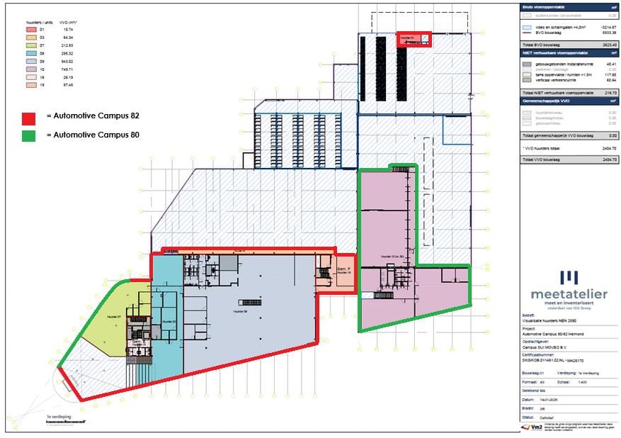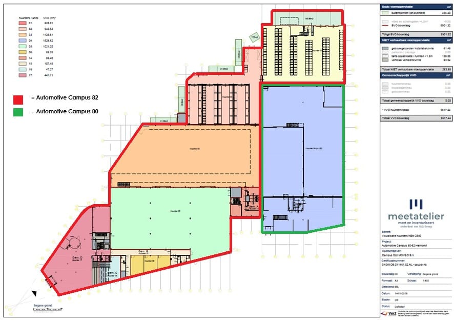 Het nieuw gebouwde complex is direct verbonden met de naastgelegen bedrijfspand Automotive Campus 80. Het is bespreekbaar dit object toe te voegen waardoor het beschikbare oppervlakte is uit te breiden met circa 1.528,62 v.v.o. bedrijfs- en kantoorruimte begane grond en circa 749,71 m² v.v.o. kantoor-/bedrijfsruimte 1e etage.
