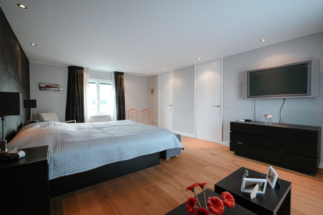 Slaapkamers: in totaal bevinden zich hier twee slaapkamers, waarvan één slaapkamer zeer ruim is. Deze zou in de toekomst gesplitst kunnen worden in twee kamers.