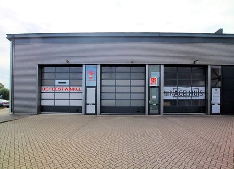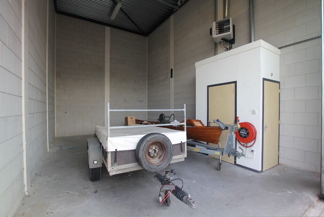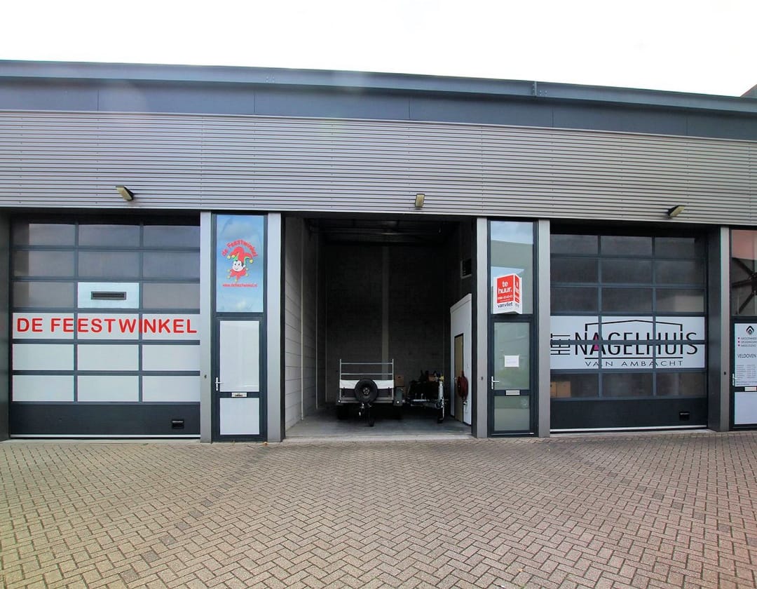 - handbedienbare overheaddeur van ca. 3,94 meter breed en ca. 4,24 meter hoog, voorzien van lichtdoorlatende segmenten;