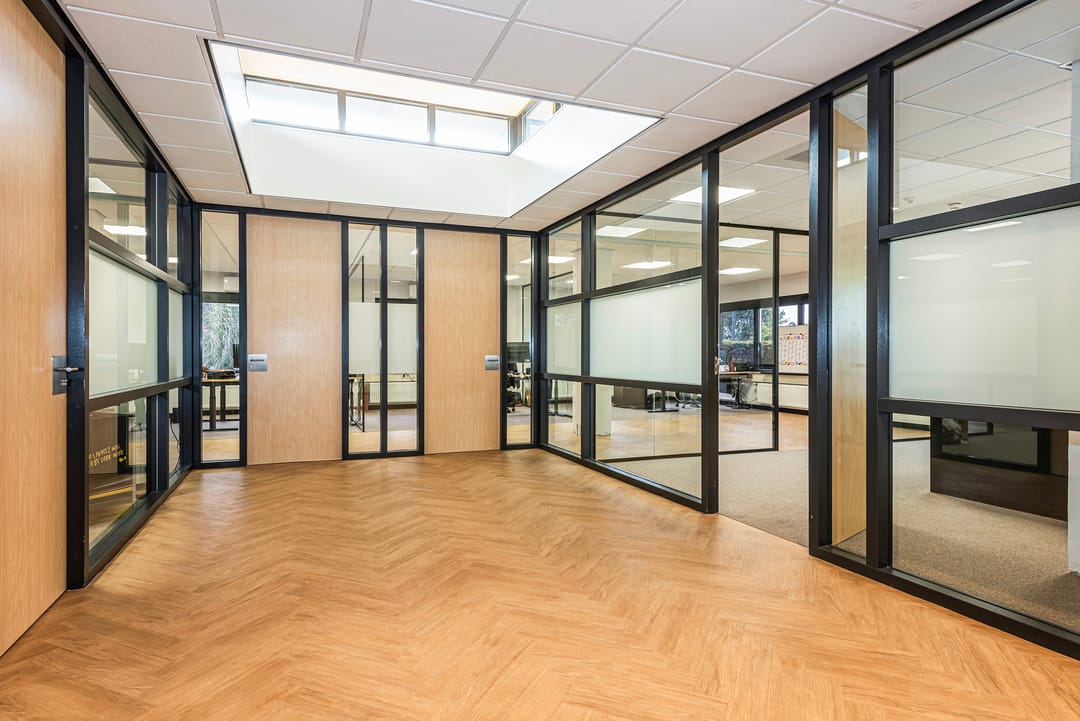 - Glazen scheidingswanden;