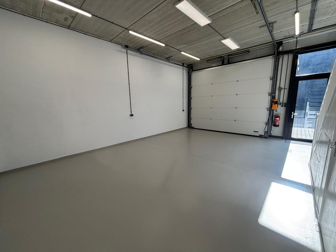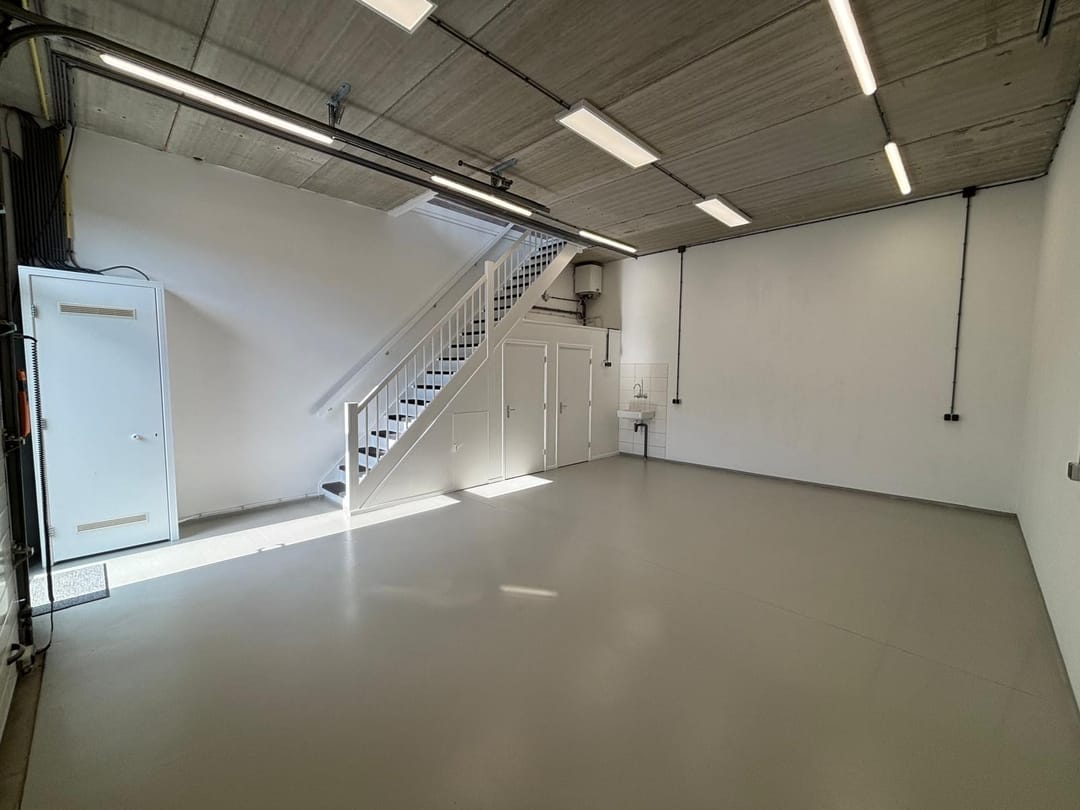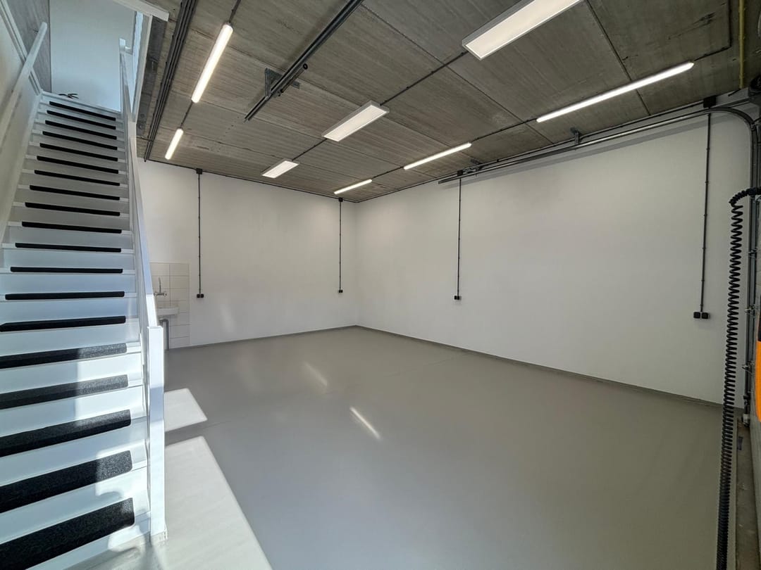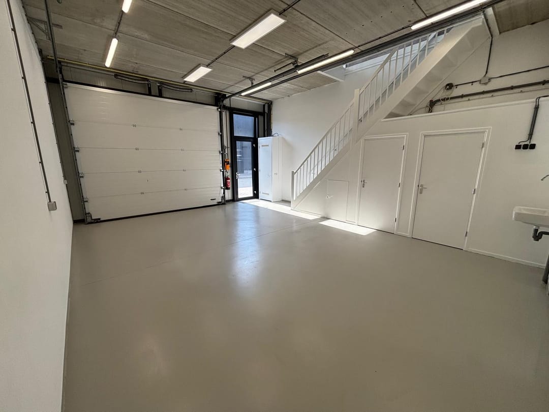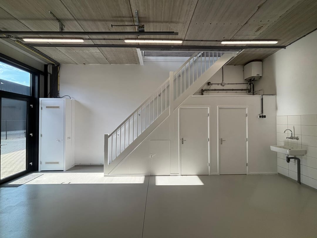 - Overheaddeuren, krachtstroom, betonvloer, toilet, pantry, inbouwarmaturen en te openen ramen
