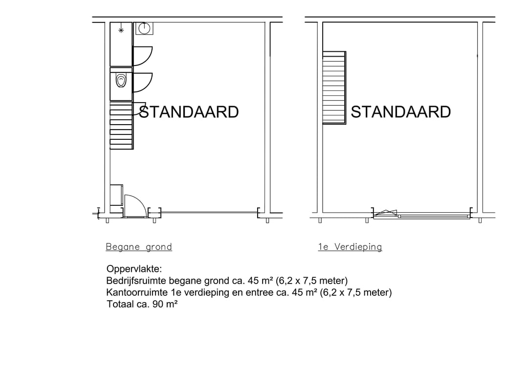 Kantoorruimte 1e verdieping en entree ca. 45 m² (6,2 x 7,5 meter)