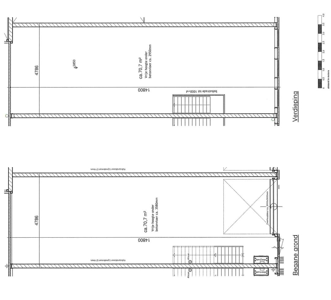- vrije hoogte begane grond ca. 3.55 meter en verdieping ca. 3 meter;