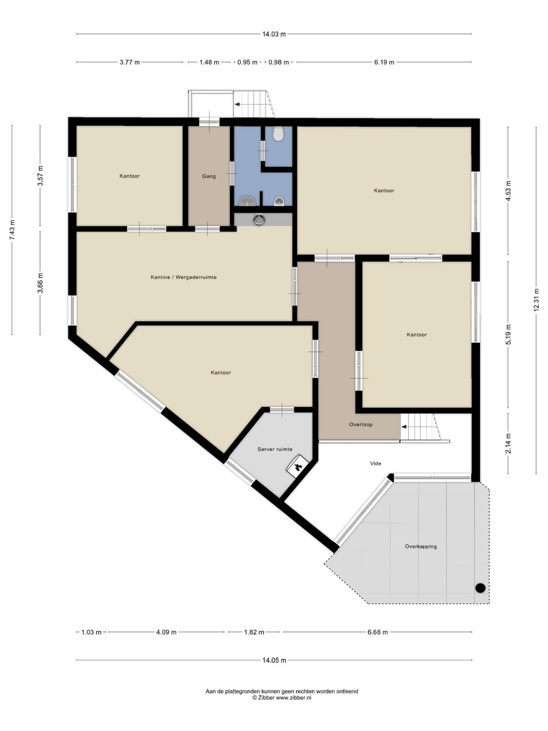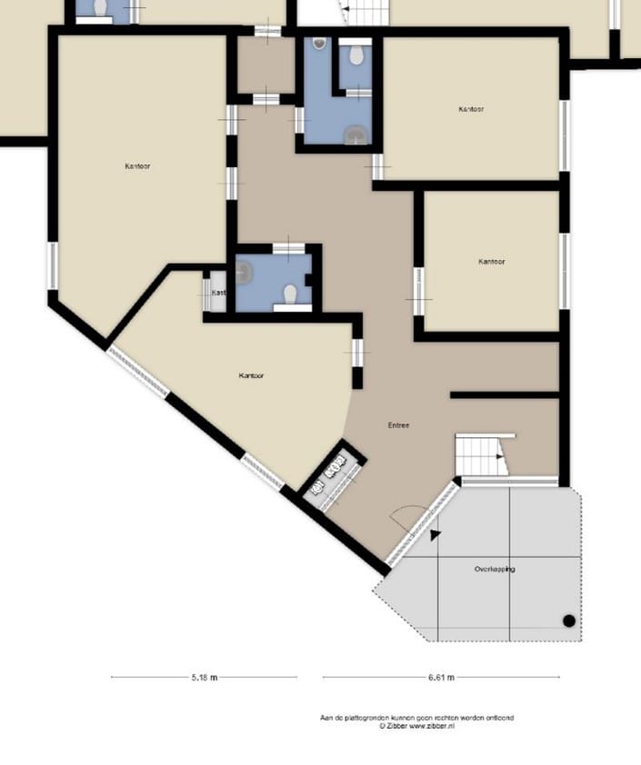 De oppervlakten zijn gemeten door de makelaar uit een kopie bouwtekening. Het opgegeven metrage is derhalve indicatief; er kunnen geen rechten aan worden ontleend noch kan er sprake zijn van enige verrekening achteraf.