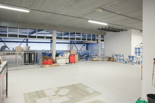 - Overheaddeuren, krachtstroom, betonvloer, toilet en inbouwarmaturen