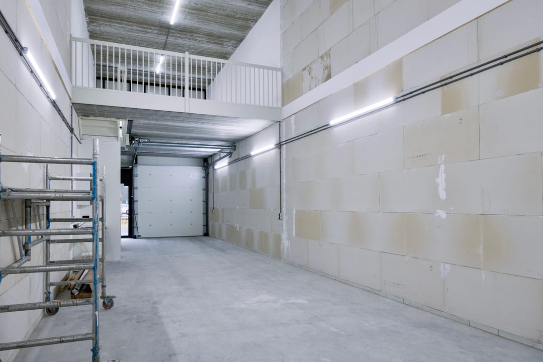 - Overheaddeuren, krachtstroom, betonvloer, toilet en pantry