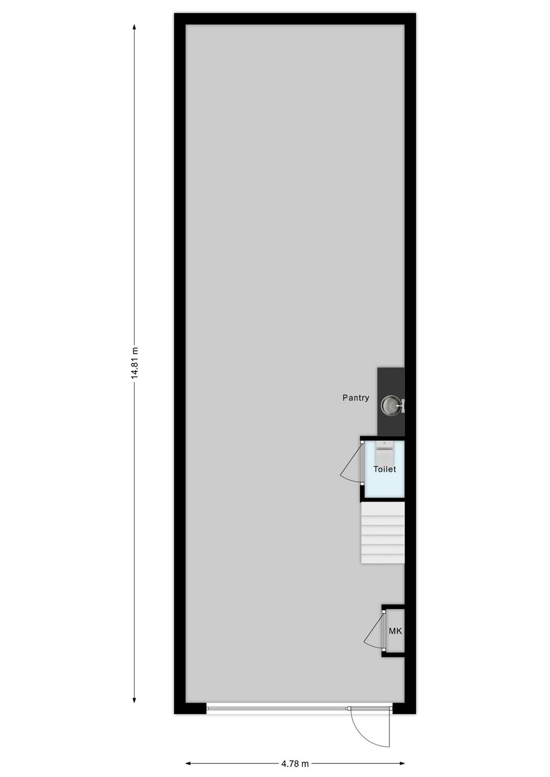 Het vloeroppervlak is gemeten door de verhurend makelaar op basis van een kopie-bouwtekening. De opgegeven metrage is derhalve indicatief. Er kunnen geen rechten aan worden ontleend, noch kan er sprake zijn van enige verrekening achteraf.