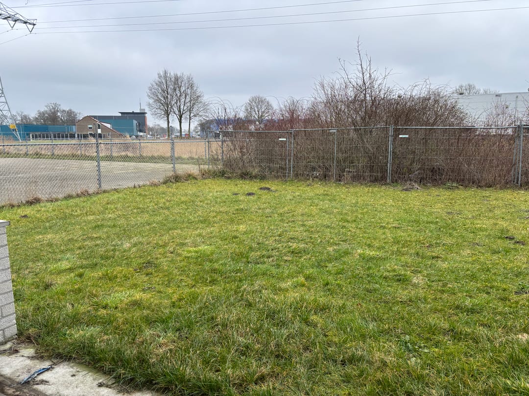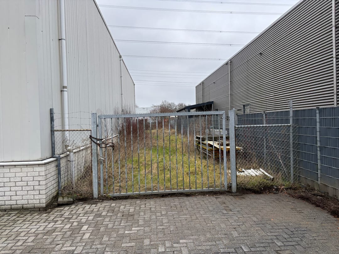 Aan de achterzijde bevindt zich een ruim, onverhard buitenterrein van circa 30 meter breed en circa 18 meter diep. Het terrein is aan beide zijden bereikbaar en biedt, na eventuele verharding, uitstekende mogelijkheden voor parkeren, opslag of stalling. Tevens zijn hier uitbreidingsmogelijkheden aanwezig.