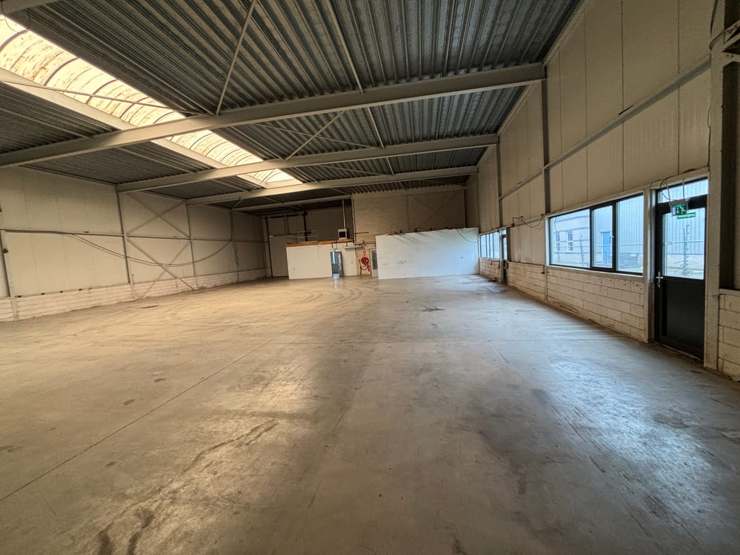 - Lichtstraten, overheaddeuren, krachtstroom, betonvloer, toilet, pantry, inbouwarmaturen en te openen ramen