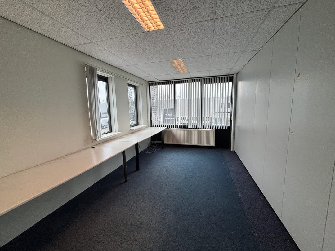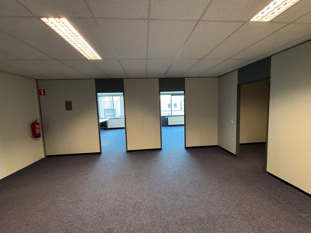 De verdieping is bereikbaar via een vaste trap en beschikt over een pantry, twee kantoren en een spreekkamer. Dankzij de hoge raampartijen genieten de kantoren van veel daglicht, wat zorgt voor een prettige werkomgeving.