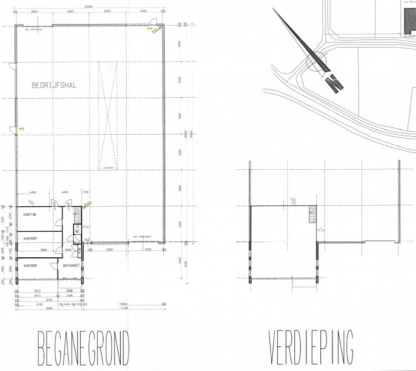 • Bedrijfsruimte en inpandige magazijnen begane grond: ca. 555 m² (ca. 20 x ca. 30 m.)