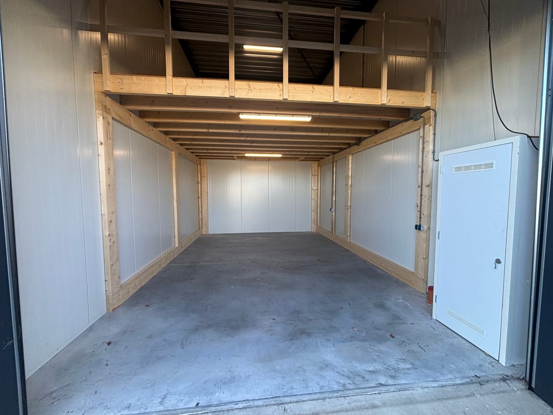 Het betreft circa 64 m² nieuwe bedrijfsruimte, voorzien van een elektrisch bedienbare overheaddeur (hoogte 3.8 meter), verlichting en krachtstroom.