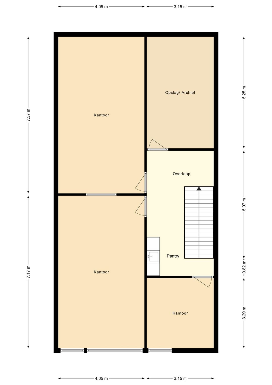 Voorkant: 7,15 × 4,05 m en 3,25 × 3,15 m