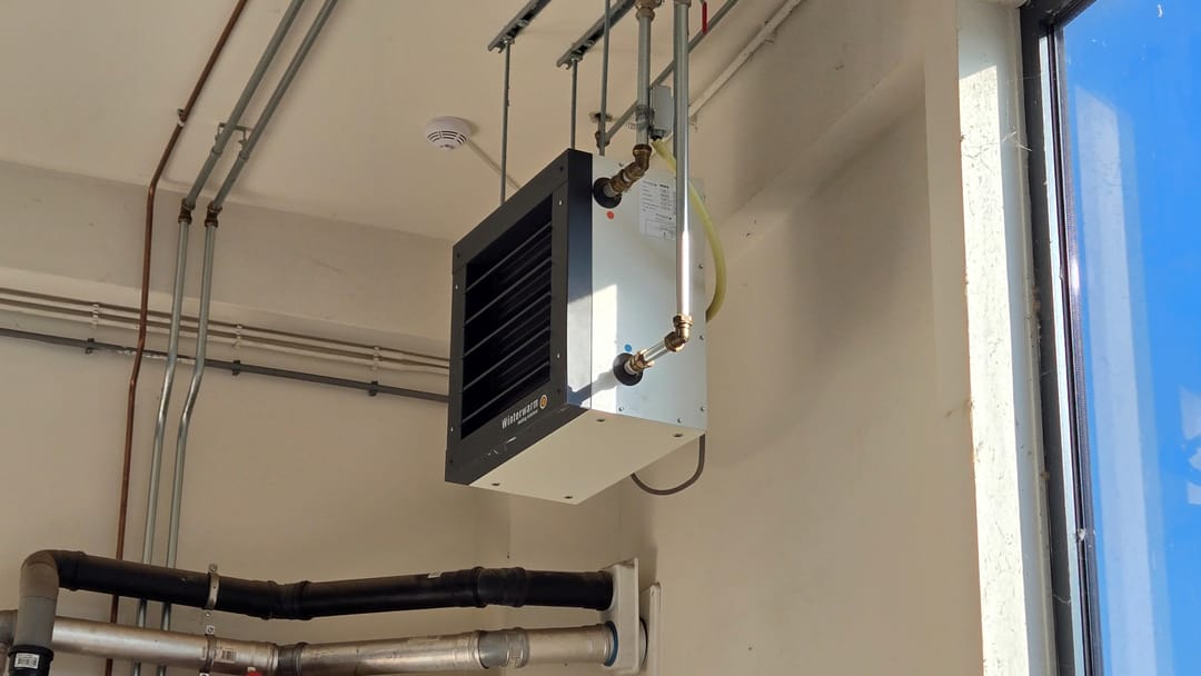 Verwarming: CV-installatie met radiatoren (kantoor) en gasheater (bedrijfsruimte)