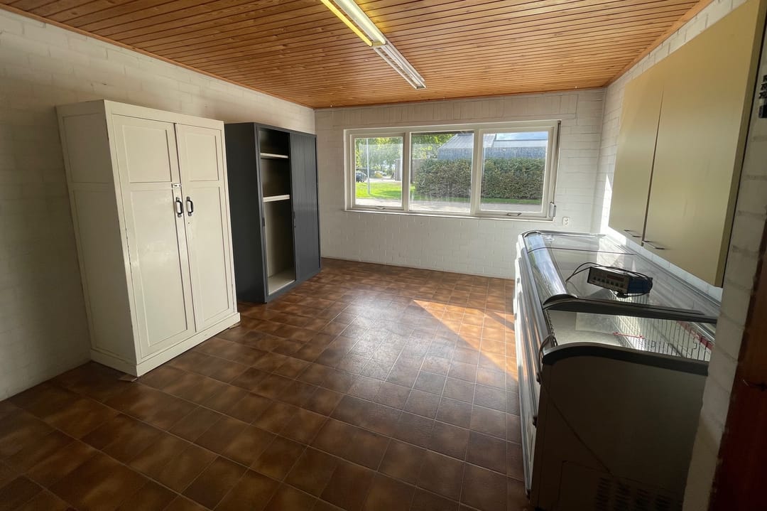 - Het raam in de kantoorruimte is voorzien van een rolluik.