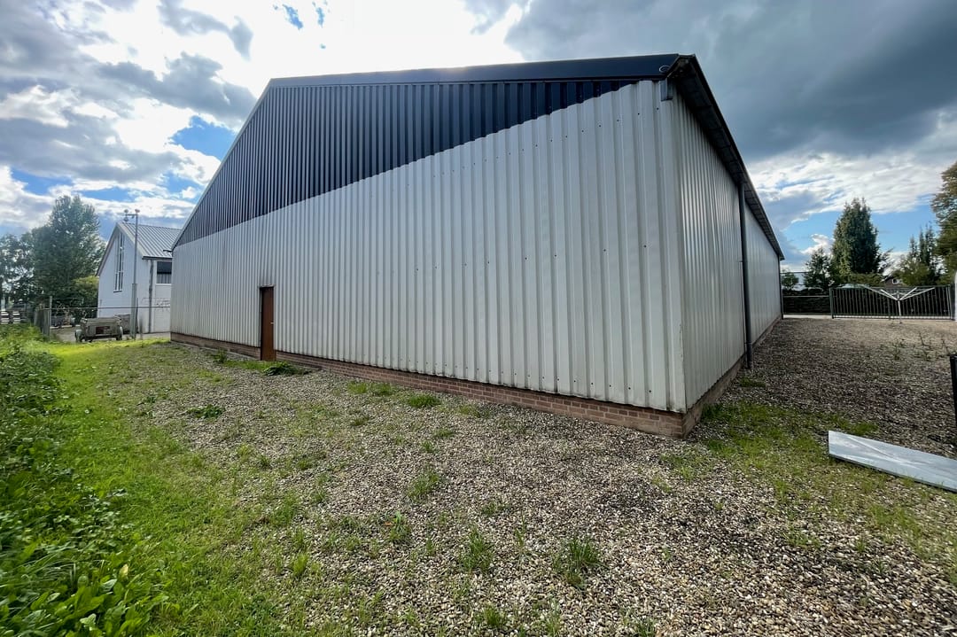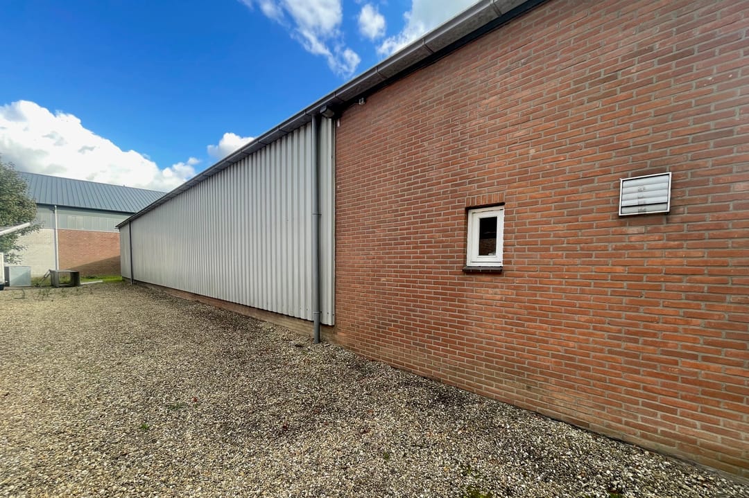 - Overheaddeuren, krachtstroom, betonvloer, toilet en te openen ramen