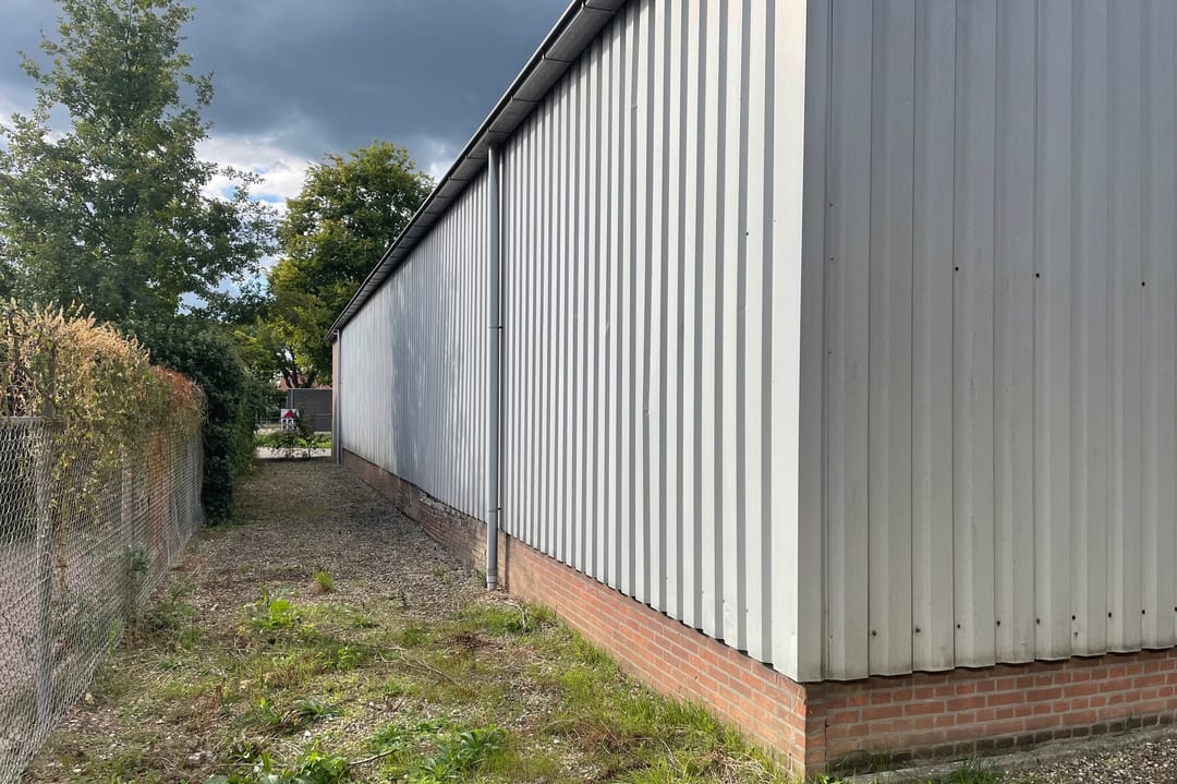 - Het terrein aan zowel de linker- als rechterzijde van de hal is afgezet middels een hekwerk.