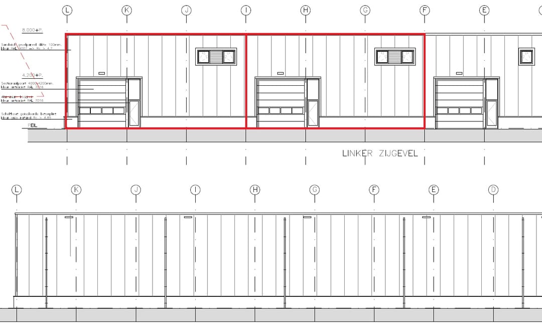 · het object is opgetrokken uit een betonnen borstwering tot 1 meter + peil en daarboven geïsoleerde sandwichpanelen