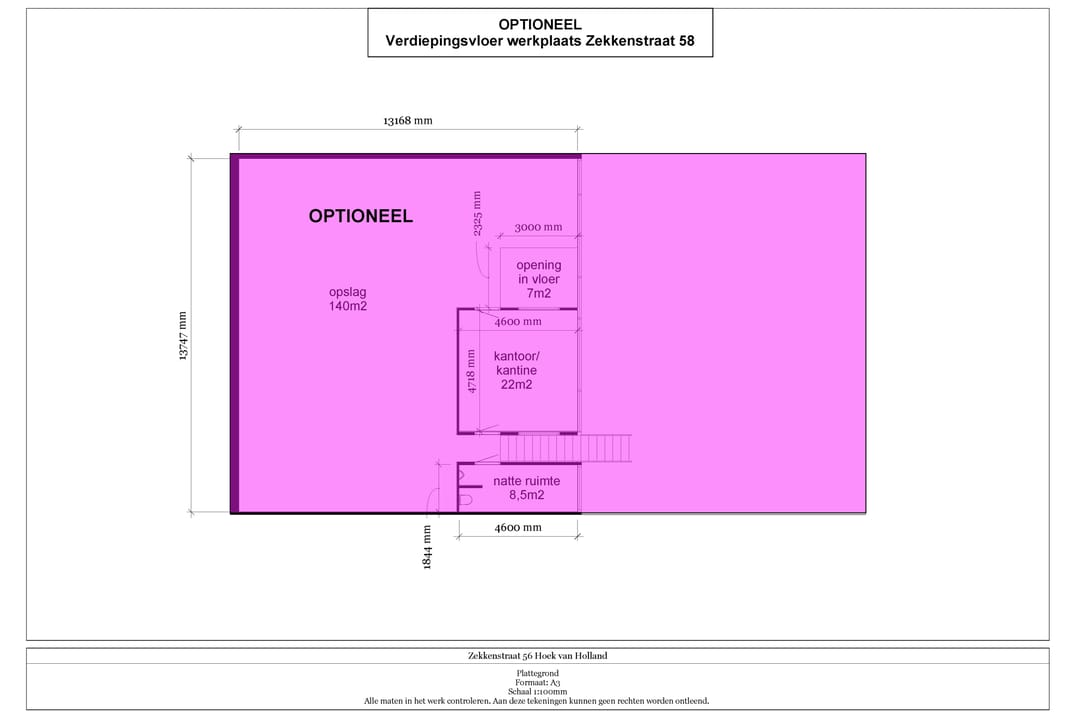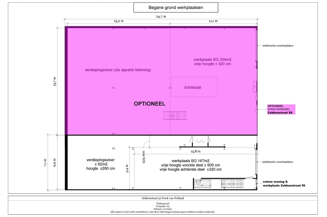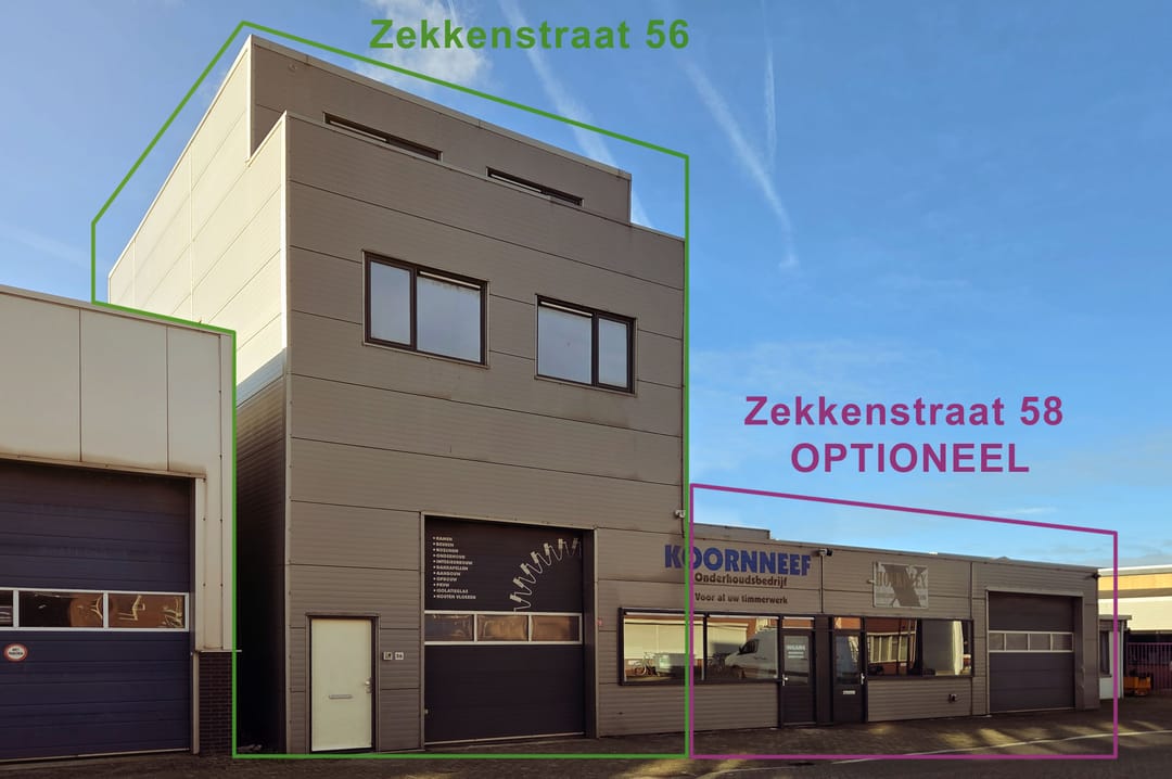 Het is optioneel om de naastgelegen bedrijfsruimte (Nr. 58) mee aan te kopen, uitsluitend in overleg en in combinatie met de aankoop van Zekkenstraat 56. Bij gezamenlijke aankoop beschikt u over een zeer royale bedrijfsruimte met een totale oppervlakte van circa 760 m². Dit kan uitgebreid besproken worden tijdens een bezichtiging.