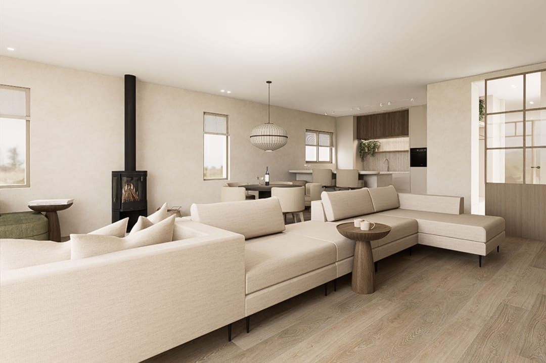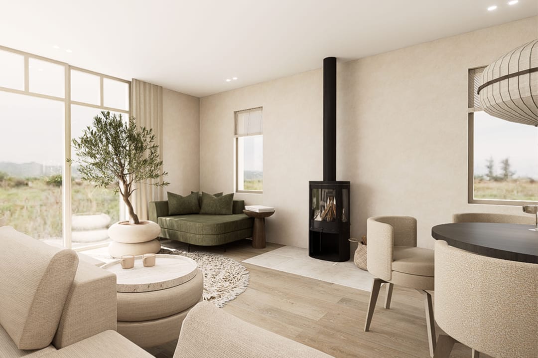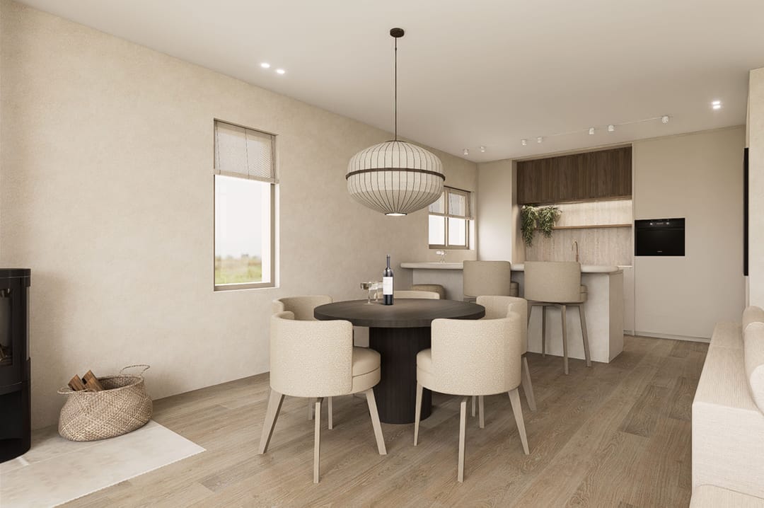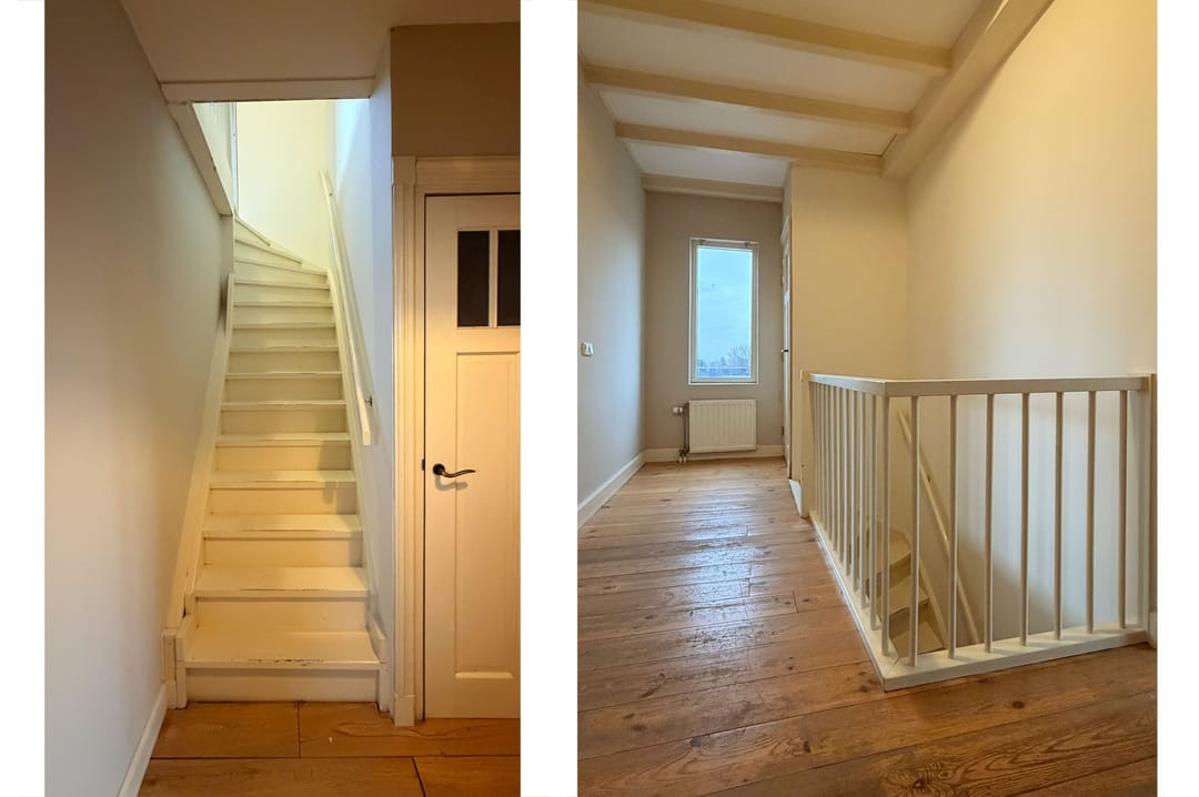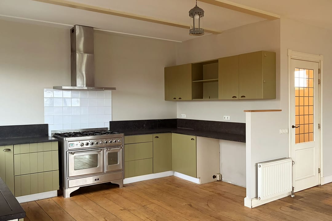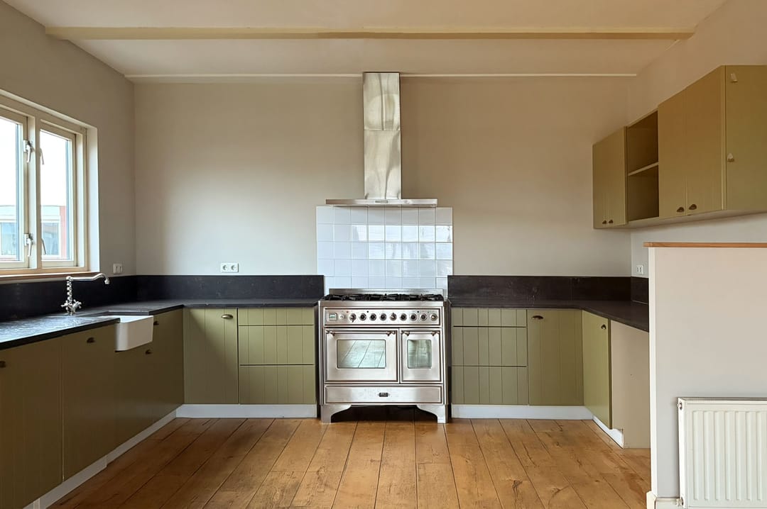 Middels een vaste trap is het woonhuis bereikbaar. Ook het woonhuis is voorzien van houten kozijnen met dubbele beglazing en in de gehele woning is vloerverwarming aangelegd, wat bijdraagt aan een comfortabel woonklimaat. De entree van de woning komt uit op een overloop met toegang tot het toilet, de wasruimte en de meterkast. Vanuit de overloop zijn tevens de overige vertrekken bereikbaar. Op deze woonlaag bevinden zich twee (slaap)kamers en een royale, lichte leefruimte waar wonen, koken en ontspannen op prettige wijze samenkomen.