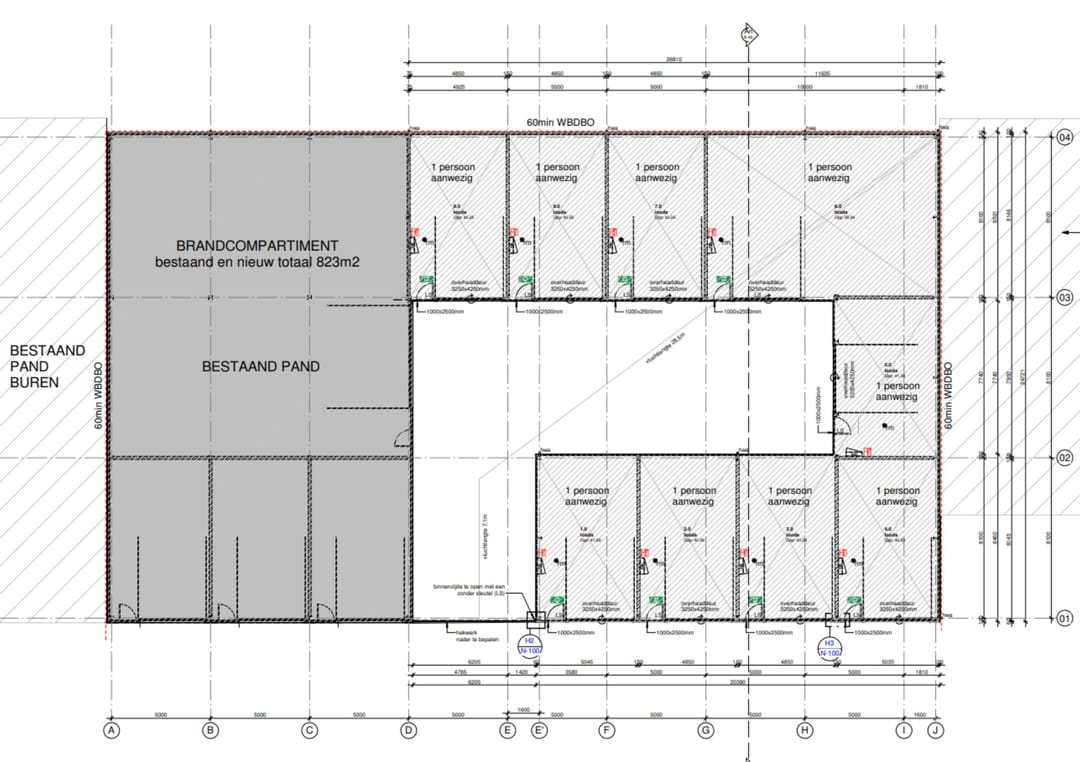 De bedrijfsunit wordt casco opgeleverd, met de volgende voorzieningen: