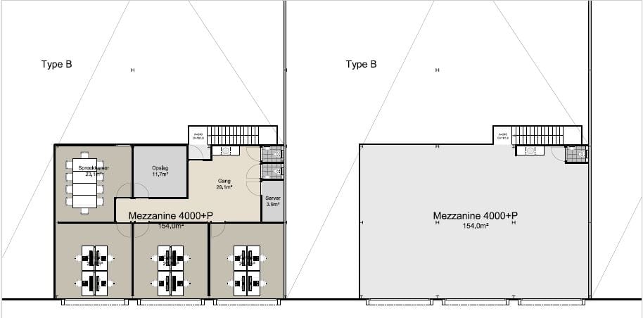 Tussenvloer – Mezzanine: 154 m²