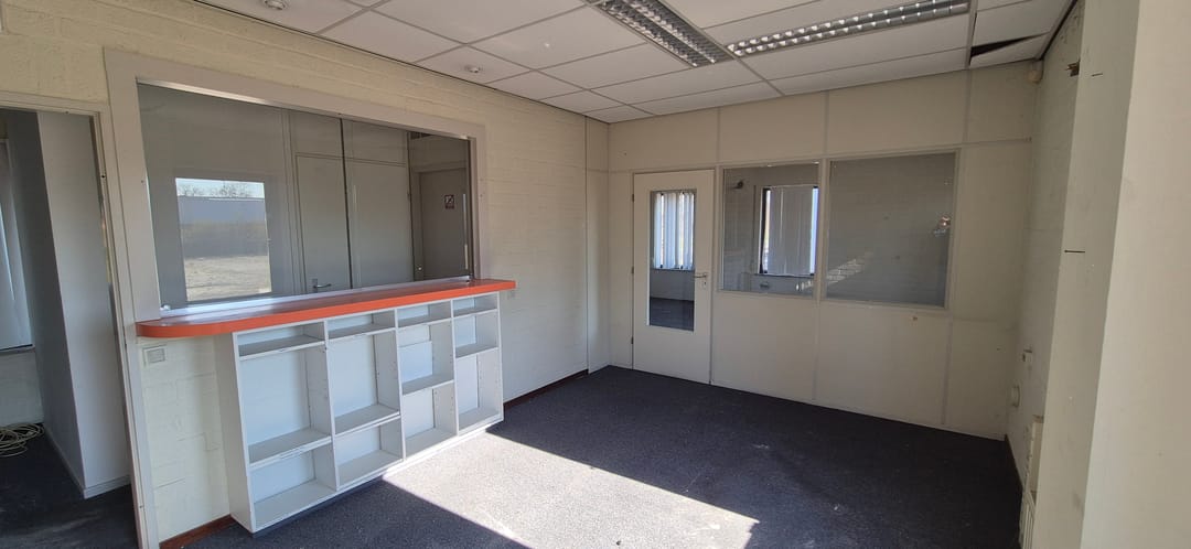 - Lichtstraten, overheaddeuren, krachtstroom, betonvloer, heater, toilet, pantry en te openen ramen