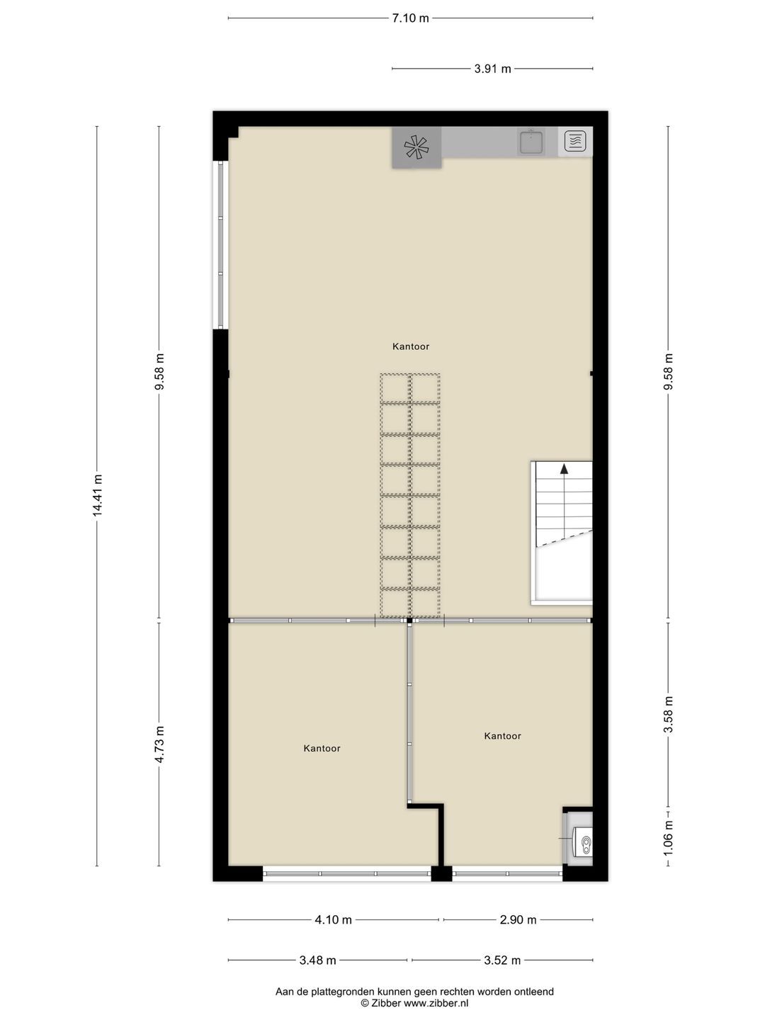 • 1e verdieping: ca. 100 m² kantoorruimte